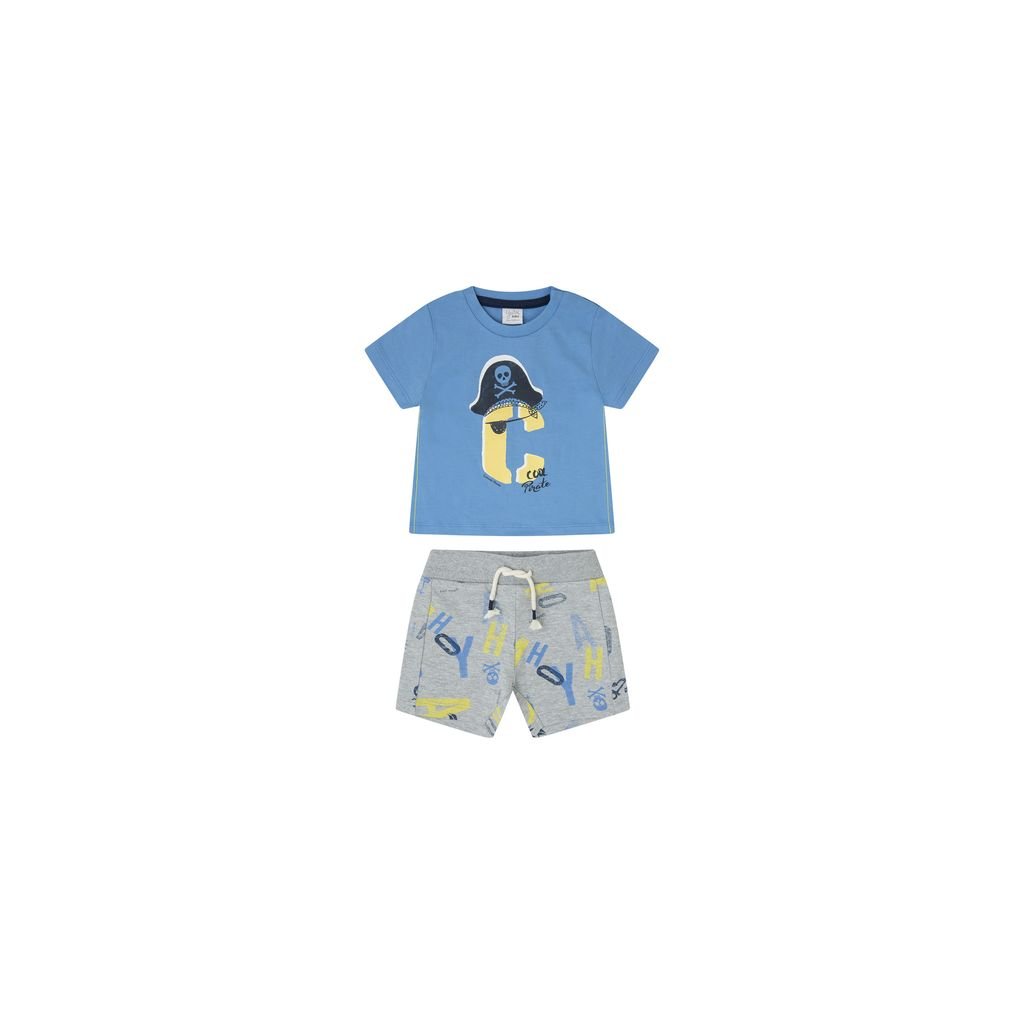 Ez a bájos 2 részes fiúruházat a legkisebbek számára ötvözi a kényelmet a játékos nyári stílussal. A készlet tartalmaz egy finom nyomott pólót kalóz mintával, 100%-os pamutból – légáteresztő és kellemes az érzékeny bőr számára. A rövidnadrág játékos gyermeknyomattal van díszítve, ami vidám és élénk megjelenést kölcsönöz az öltözéknek. Tökéletes készlet mindennapi viselethez, játékhoz és kirándulásokhoz.