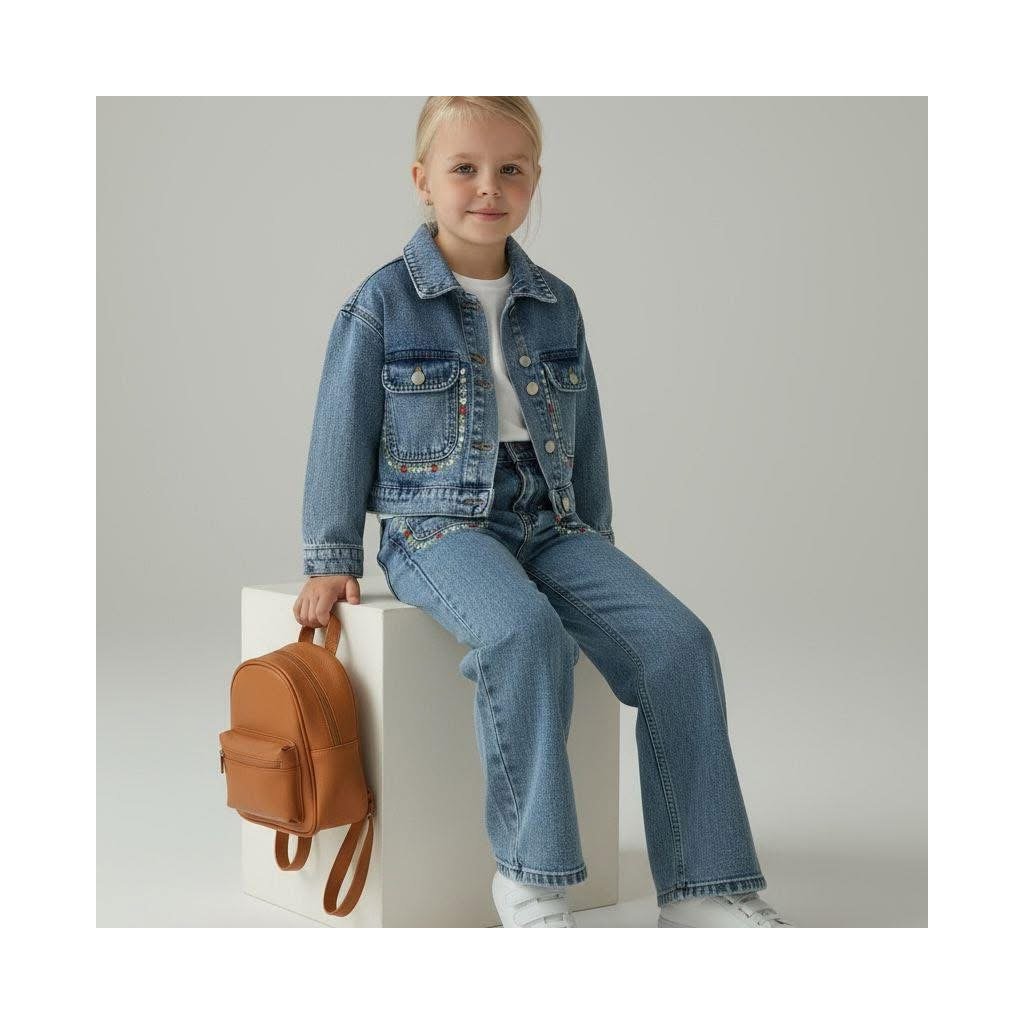 Fedezze fel az időtlen outfitet, amely ötvözi a kényelmet és a stílust. Farmerdzseki finom virágos díszítéssel, klasszikus farmerral és egyszínű fehér pólóval tökéletes megjelenést kölcsönöz minden napra. Ideális választás azoknak a lányoknak, akik szeretik az egyszerű eleganciát egy csipetnyi eredetiséggel.