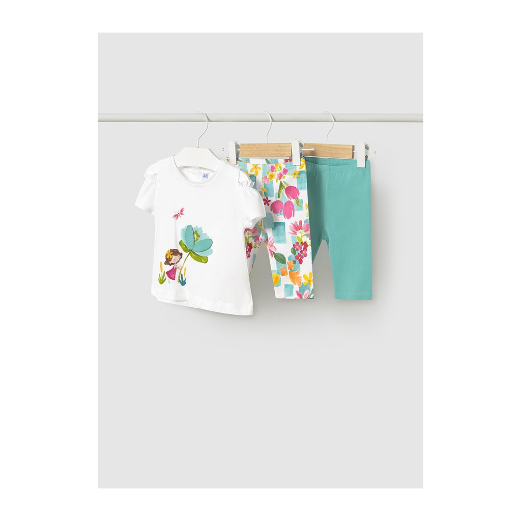 Friss nyári pamut szett lányoknak tartalmaz kényelmes 3/4-es leggingset és könnyű rövid ujjú pólót. A puha pamut anyag lélegző és kellemes viselet meleg napokon. Gyakorlati és kényelmes szett ideális játékhoz, szabadidőhöz és kirándulásokhoz, miközben maximális mozgásszabadságot és friss nyári megjelenést biztosít.