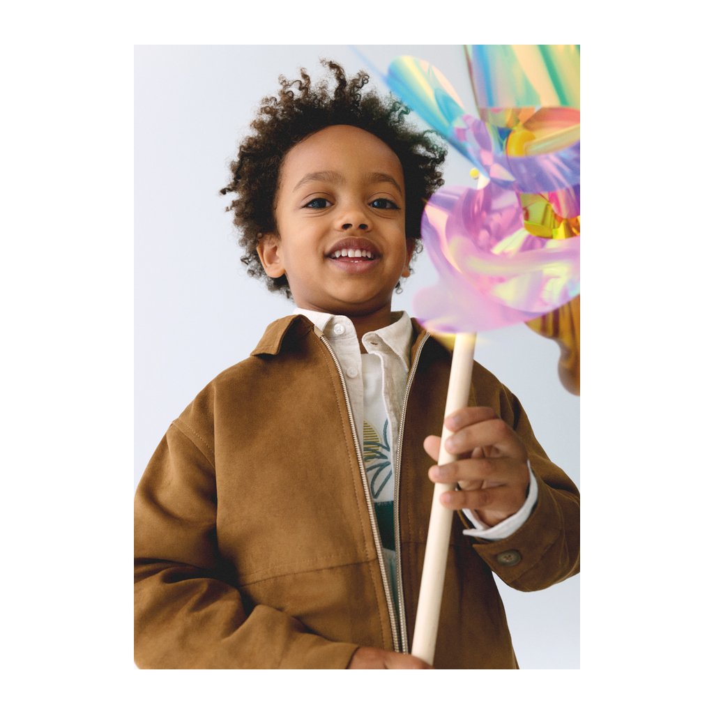 Elegáns átmeneti kabát Mayoral fiúknak modern barna árnyalatban, stílusos nubuk kinézettel és időtlen dizájnnal. A egyenes szabás kényelmet nyújt mindennapi viselethez, könnyen kombinálható farmerekkel és elegánsabb nadrágokkal.