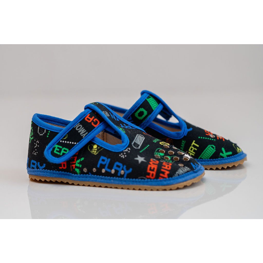 Könnyűek, puhák és nagyon rugalmasak a gyerekek számára. Jellemzőjük a vékony, hajlékony talp (zero‑drop), amely lehetővé teszi a láb természetes mozgását és hajlítását. Textil anyagból készülnek, csúszásmentes mintával a talpán, így alkalmasak benti viseletre, óvodába vagy iskolába. Ragasztószalaggal záródnak, így könnyen felhúzhatók, és jól igazíthatók a láb formájához.