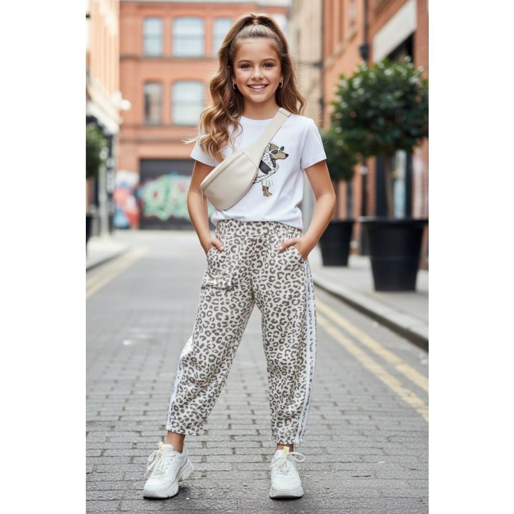 Bézs színű 2 részes lány szett leopárd mintával