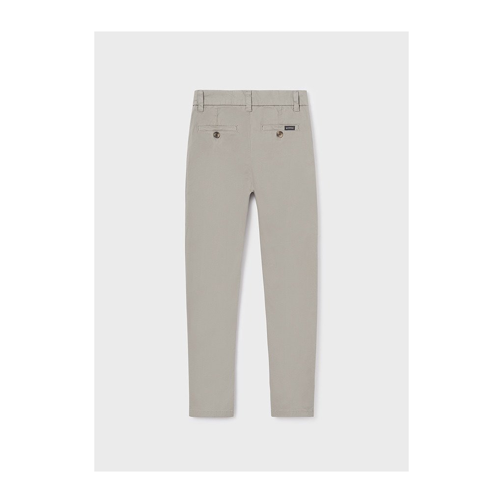 Elegáns fiú chino nadrág Mayoral Chino Slim egyszerre ötvözi a modern megjelenést és a kényelmet. Slim szabás adja a nadrágnak az igazított és stílusos megjelenést. Gombos záródás klasszikus elegáns részletet nyújt, míg állítható derék belső gumival lehetővé teszi az egyszerű és pontos derékméret-beállítást a gyermek testalkatához igazítva.