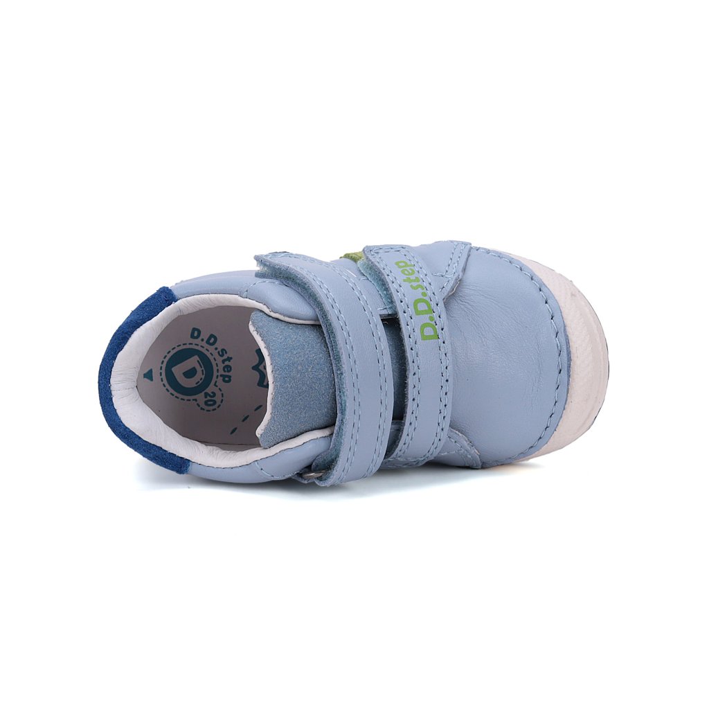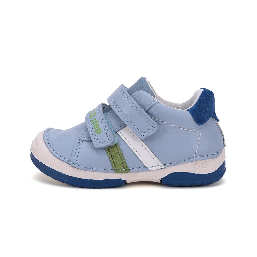 Gyermek bőrcipő, puha-flexibilis talp a kényelmes járáshoz és praktikus tépőzáras záródás. A cipő teljes bőrből készült, bőr alakítható talpbetéttel a legmagasabb minőségű bőrből, hogy a gyerekek számára maximálisan kényelmes legyen. A talp ragasztott és varrott a legmodernebb 3D technológiával. A D.D.Step cipő könnyített.