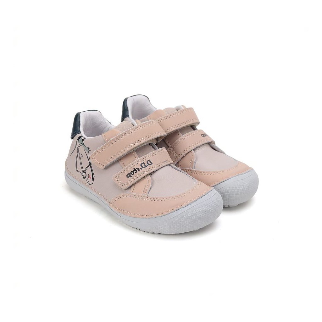 Bőr gyermekcipő, átmeneti cipő D.D.STEP márkától, ortopéd talpbetéttel és formázott boltozattal. A cipő ideális a legkisebbek számára, akik tanulnak járni, mivel puha, könnyű és nagyon rugalmas. Ideális átmeneti időszakra. A záródás tépőzárral történik. Elöl magasított gumi védi a kopástól.