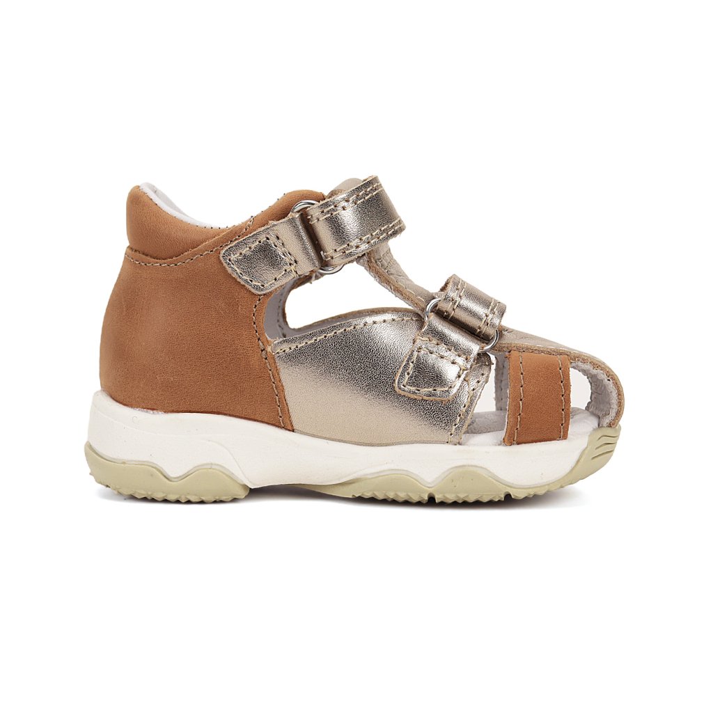 A szandálok minőségi természetes bőrből készültek, amely puha, légáteresztő és alkalmazkodik a láb formájához. Zárt sarok és orr védi a lábujjakat, és jobb stabilitást biztosít járás közben. Az ortopédiai kialakítású talp támogatja a természetes lábtartást.
