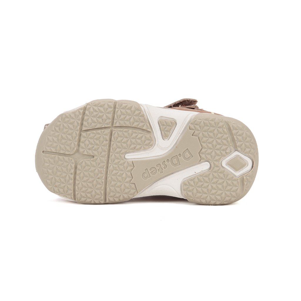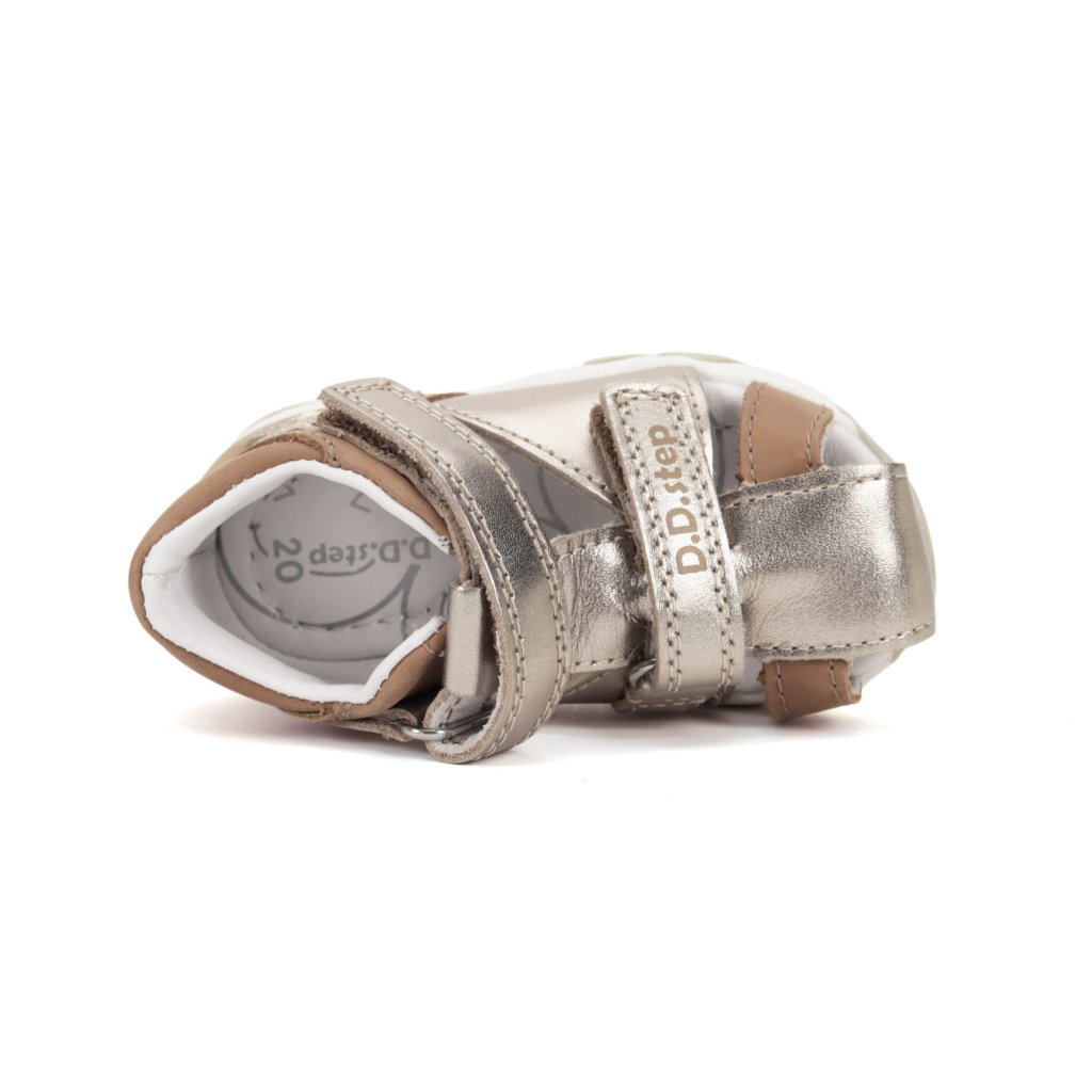 Masszív gyermek szandálok D.D.Step természetes bőrből, zárt sarokkal és orral, ideális mindennapi viselethez. Stabil támaszt nyújtanak, védenek a lábujjaknak, és kényelmet biztosítanak, ami hozzájárul a gyermek lábának helyes tartásához.
