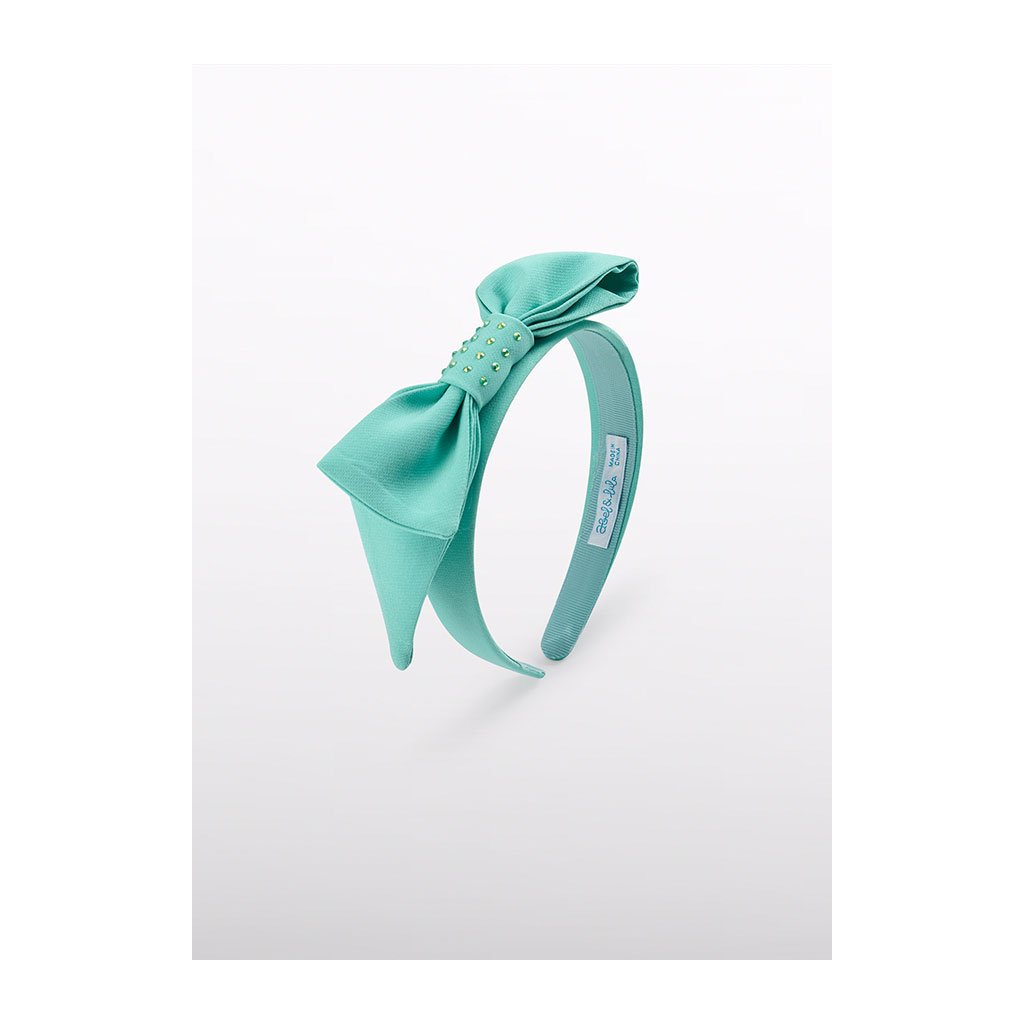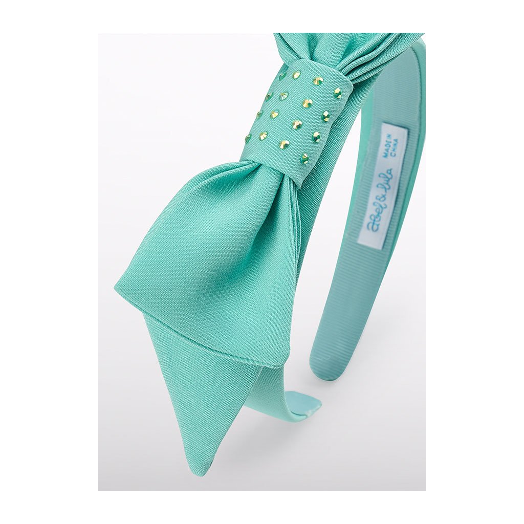 Elegáns lányszépség hajpánt az Abel & Lula márkától díszített masnival, amely a közepén helyezkedik el, ami időtlen és gyengéd megjelenést kölcsönöz neki. Finom díszítés hangsúlyozza a hajpánt luxus jellegét anélkül, hogy zavaró lenne. Ez a stílusos hajékszer ideális ünnepi alkalmakra és mindennapi viseletre is.