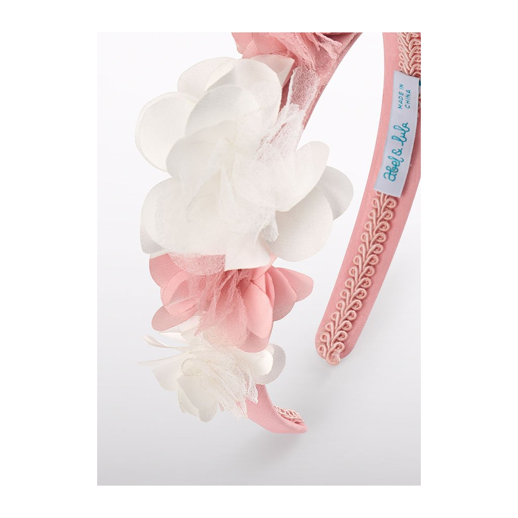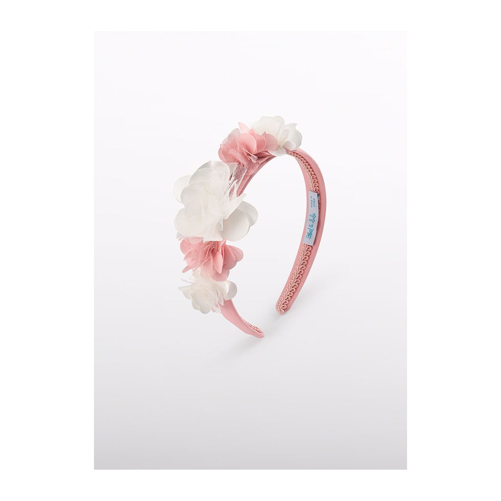 Luxusrózsaszín hajpánt Abel & Lula fehér és rózsaszín tüllvirágokkal