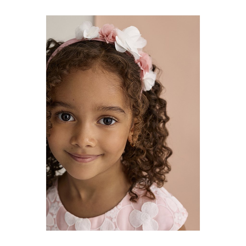 Gyengéd és elegáns lányszíni hajpánt márkától Abel & Lula finom rózsaszín árnyalatban díszített kifejező tüllvirágokkal fehér és rózsaszín árnyalatokban. A harmonikus színkombináció romantikus és friss hatást kelt, így a hajpánt ideális kiegészítő ünnepi alkalmakra és nyári napokra.