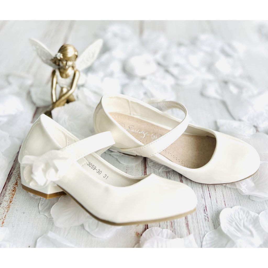 Fehér balerina az elsőáldozásra kis sarkú, nagyon népszerű a kislányok körében, elegáns kiegészítő ünnepi alkalmakra. Finom kialakítása szépen kiegészíti az elsőáldozási ruhát, és hangsúlyozza ennek a napnak a különleges jellegét. Szintetikus anyagból készült felsőrész sima, könnyen karbantartható, tiszta és rendezett megjelenést kölcsönöz.