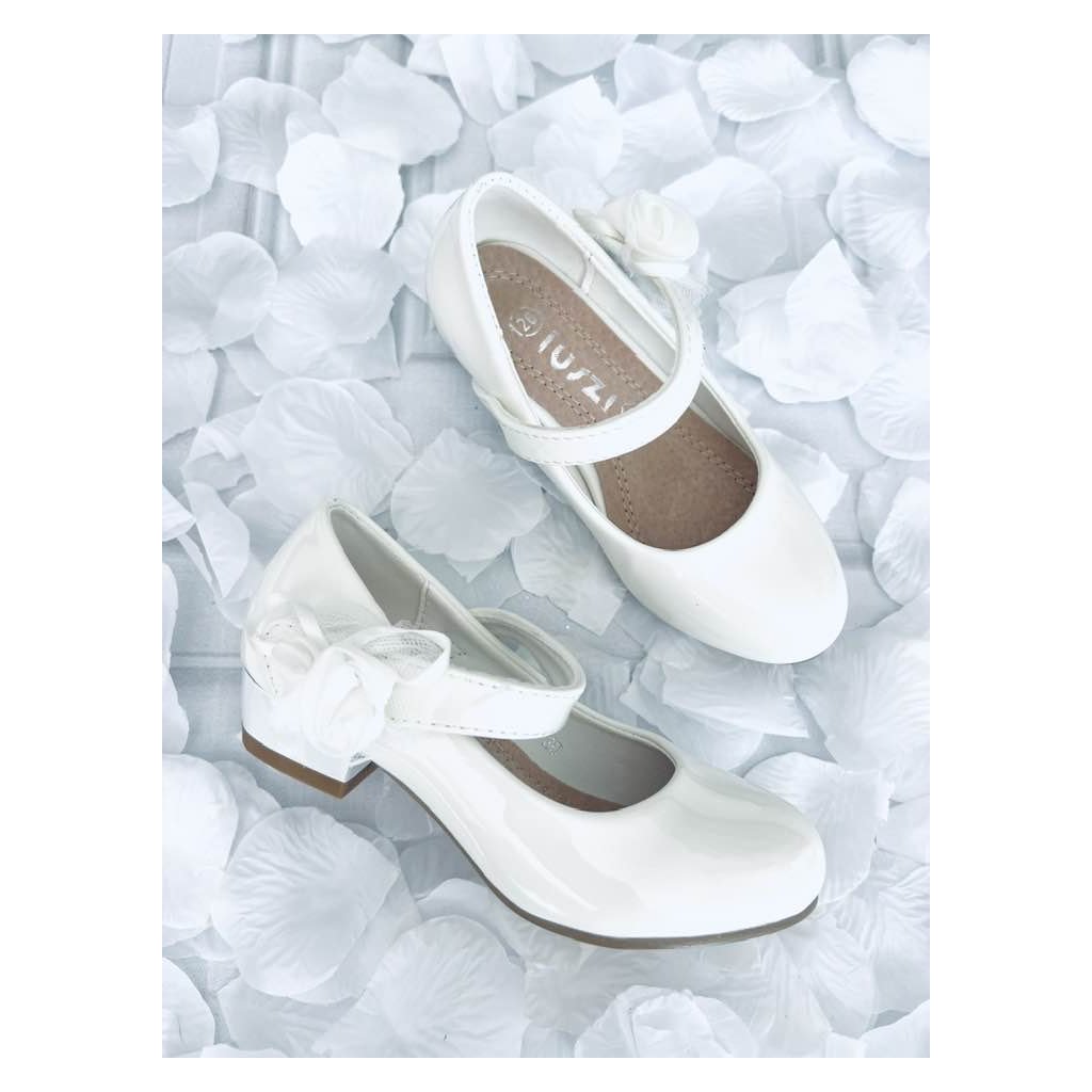 Fehér balerinák első áldozásra kis sarkú, nagyon népszerű a kislányok körében, elegáns kiegészítő ünnepi alkalmakra. Finom kialakításuk szépen kiegészíti az áldozási ruhát, és hangsúlyozza ennek a napnak a különleges jellegét. Szintetikus anyagból készült felsőrész sima, könnyen karbantartható, tiszta és rendezett megjelenést kölcsönöz.