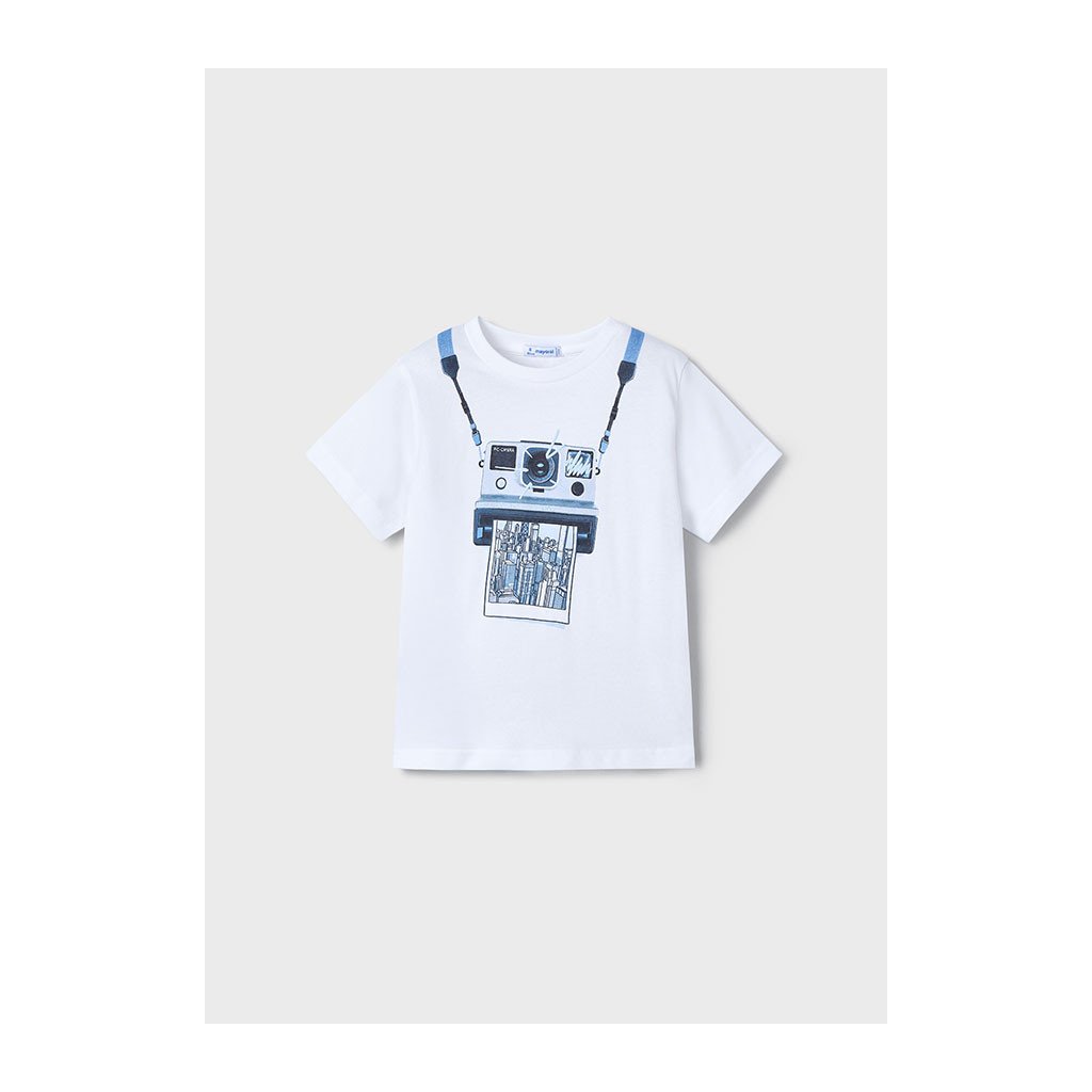 Stílusos fiú póló a márkától Mayoral eredeti nyomtatással. 100%-os pamutból készült. Ez a puha és kényelmes anyag biztosítja a kellemes viseletet egész nap, akár az udvaron, kirándulásokon vagy mindennapi tevékenységek során.