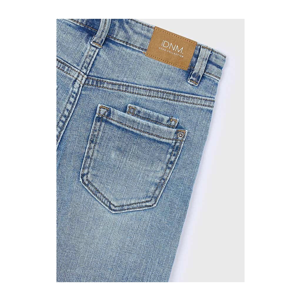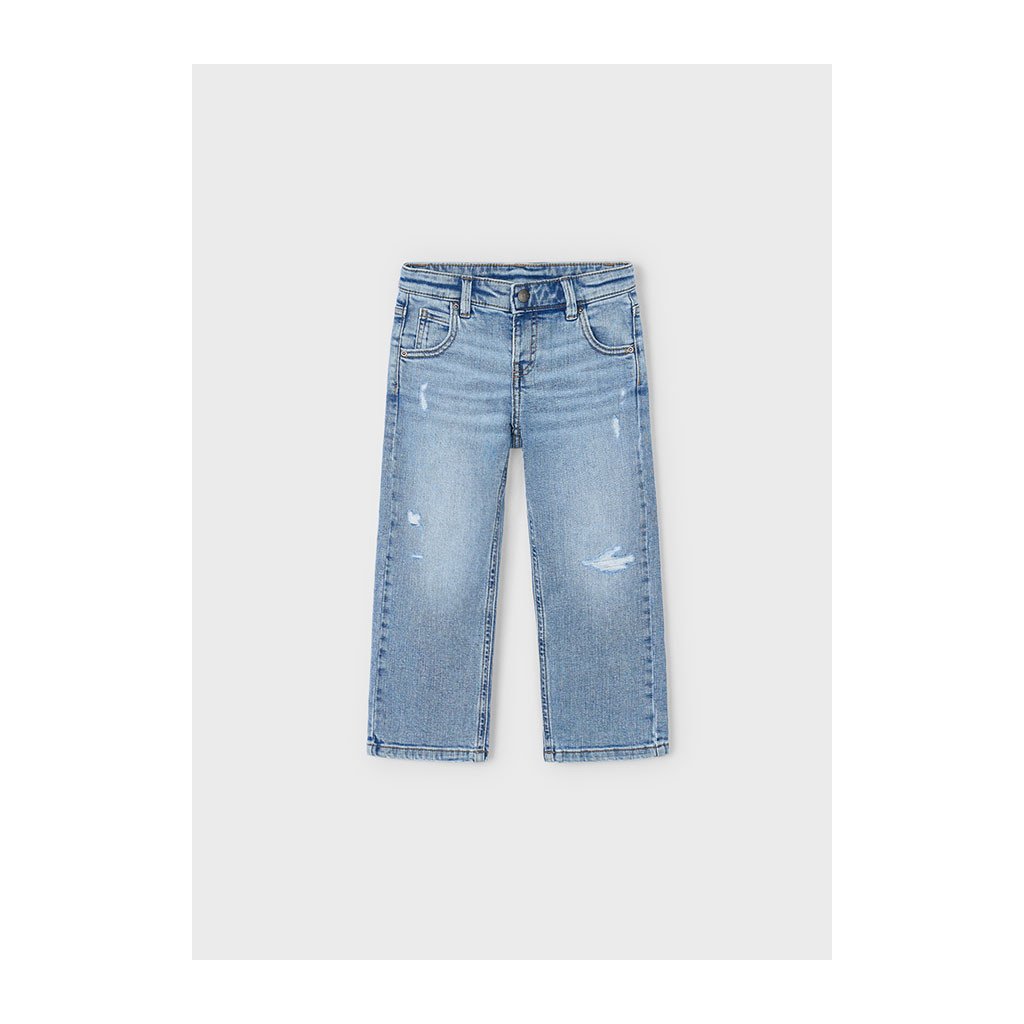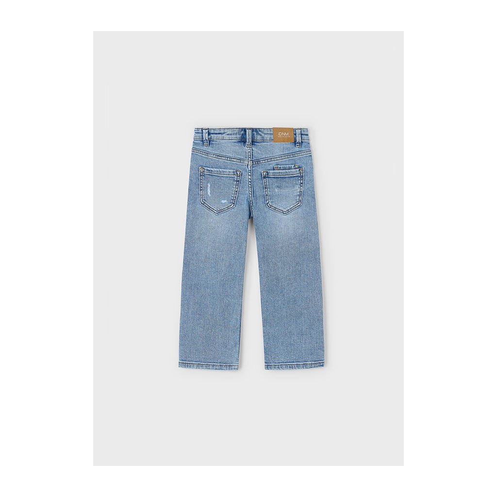 Stílusos kopott fiú farmerok Mayoral egyesítik a kényelmet és a divatos megjelenést. Kapcsos záródás lehetővé teszi az egyszerű és gyors öltözködést, míg állítható derék pontos derékméret-beállítást tesz lehetővé, ami kényelmes viseletet biztosít egész nap. A modern Széles szabás trendi megjelenést és szabad mozgást kölcsönöz a farmernek.