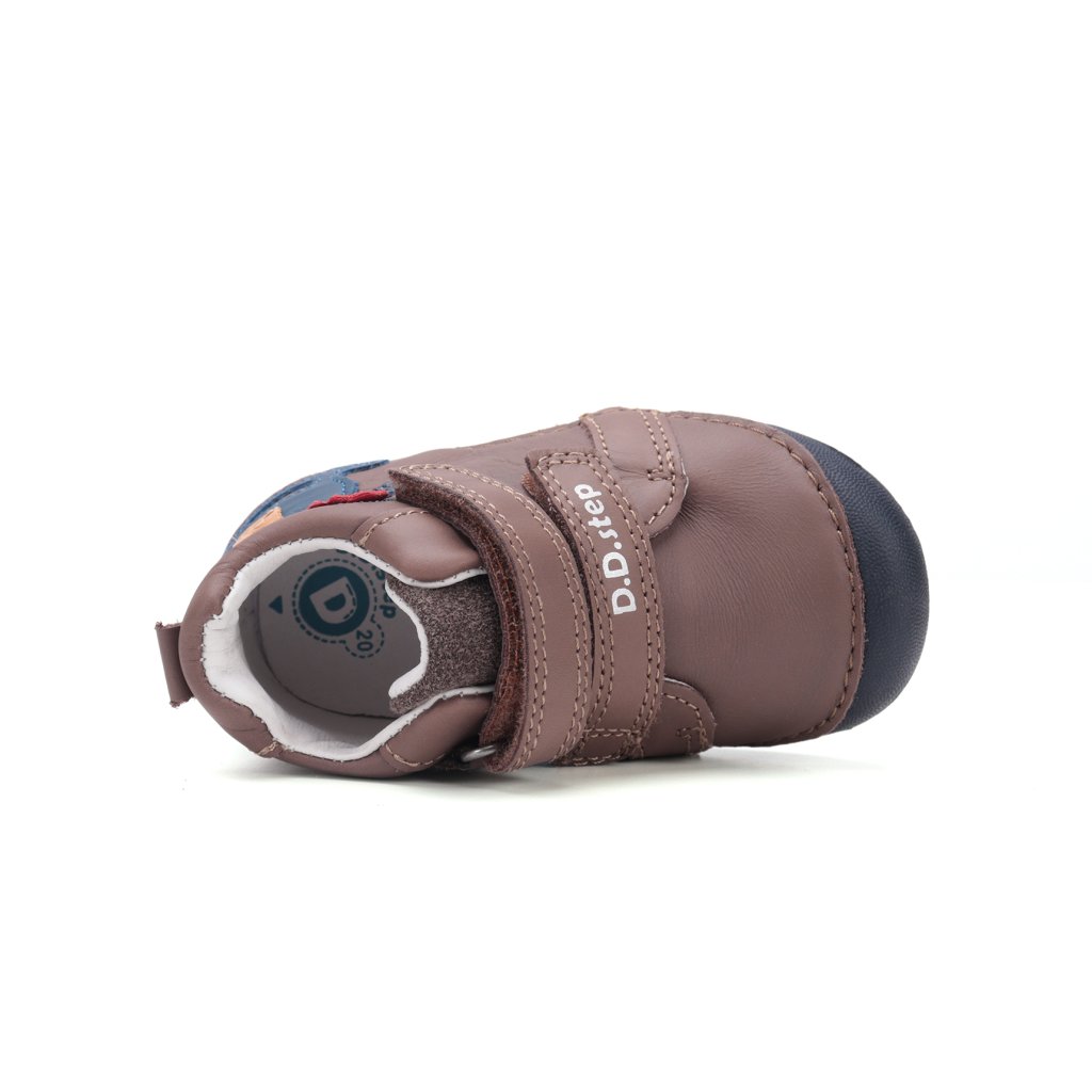 Minden D.D. Step cipő valódi, kiváló minőségű marhabőrből készül, hogy tökéletesen alkalmazkodjon a gyerek lábához. Az orr-rész úgy van kialakítva, hogy védje a lábujjakat, támogassa azok helyes növekedését, és növelje a cipő tartósságát.