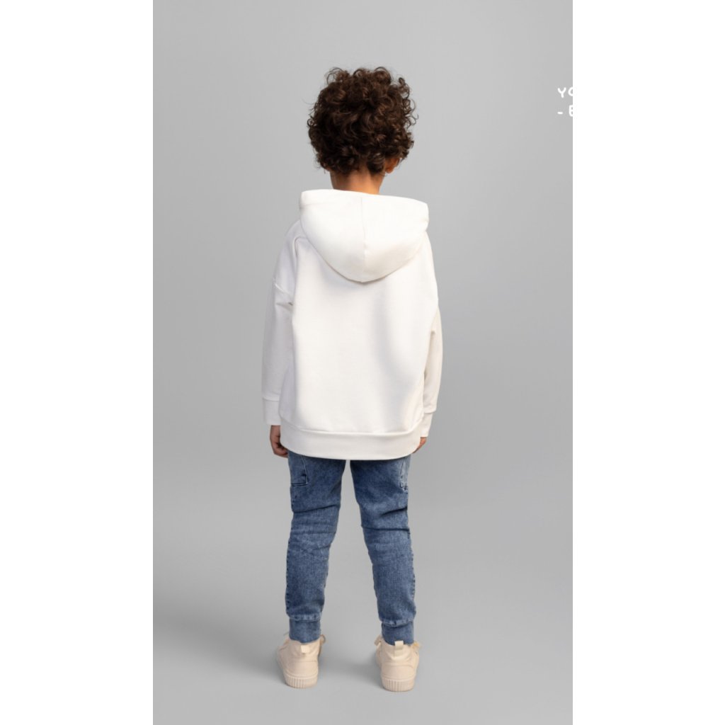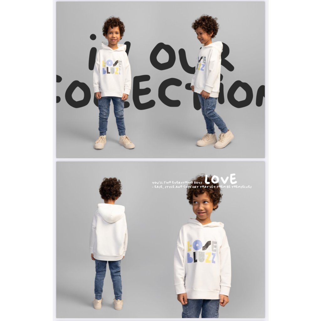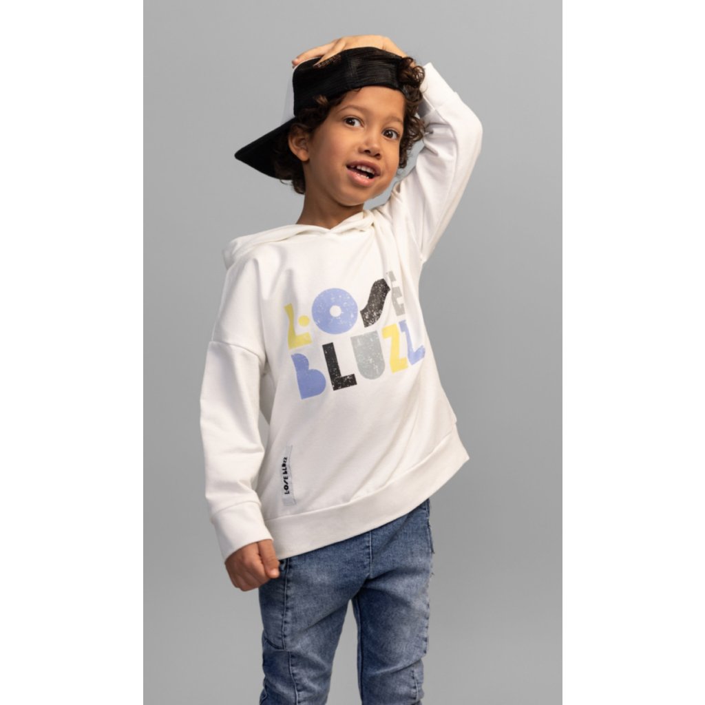 Stílusos fiús Loose Bluzz kapucnis pulóver lazább és kényelmesebb szabással kínál, ideális mindennapi viselethez. Az elülső részt modern nyomtatás díszíti, ami trendi és stílusos megjelenést kölcsönöz a pulóvernek.