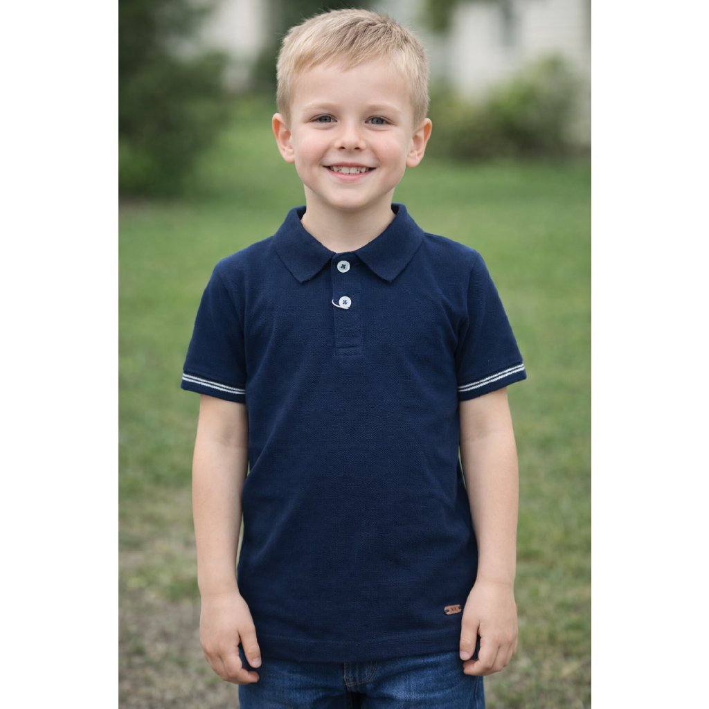 A kék színű rövid ujjú fiús poló stílusos és kényelmes darab mindennapi és ünnepi viselethez egyaránt. A finom szegély az ujjakon elegáns és rendezett megjelenést kölcsönöz a pólónak. Kellemes anyaga egész napos komfortot biztosít, könnyen kombinálható nadrággal vagy rövidnadrággal.