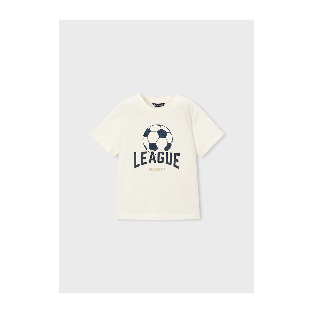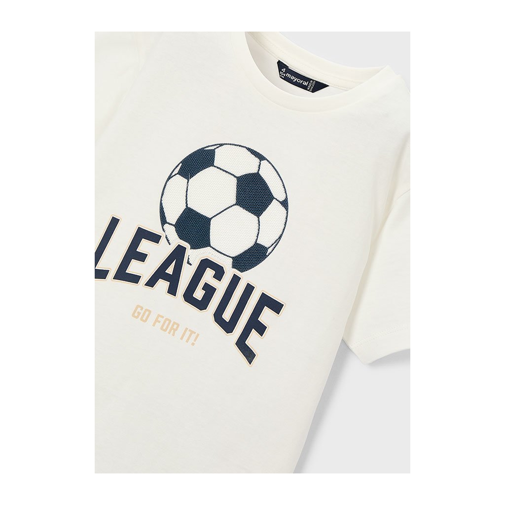 Kényelmes pamut póló MAYORAL élénk nyomtatással focilabda a elülső oldalon ideális minden fiúnak, aki szereti a sportot és az aktív játékokat. A kiváló minőségű pamutnak köszönhetően a póló kellemes tapintású, légáteresztő és alkalmas mindennapi viseletre, akár iskolába, játszótérre, edzésre vagy szabadidős tevékenységekre.