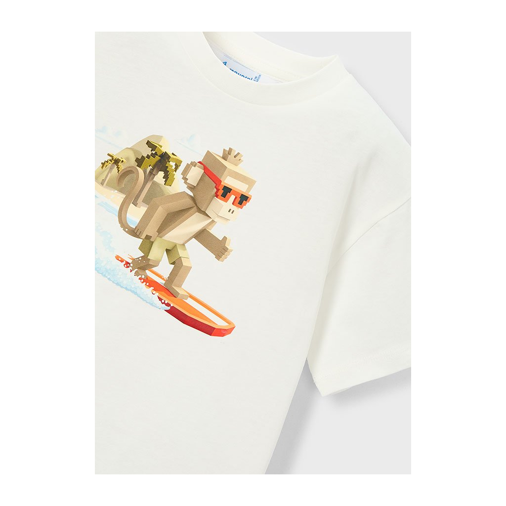 Bpáratlan fiús póló a márkától Mayoral modern és játékos dizájnt kínál pixel stílusú grafikai nyomtatással, amely emlékeztet a népszerű játékra, a Minecraft-ra. Ideális kisebb és nagyobb digitális kalandrajongóknak. A Mayoral európai gyermekdivatmárka, amely ismert minőségéről, eredeti nyomtatásairól és kényelmes szabásáról.