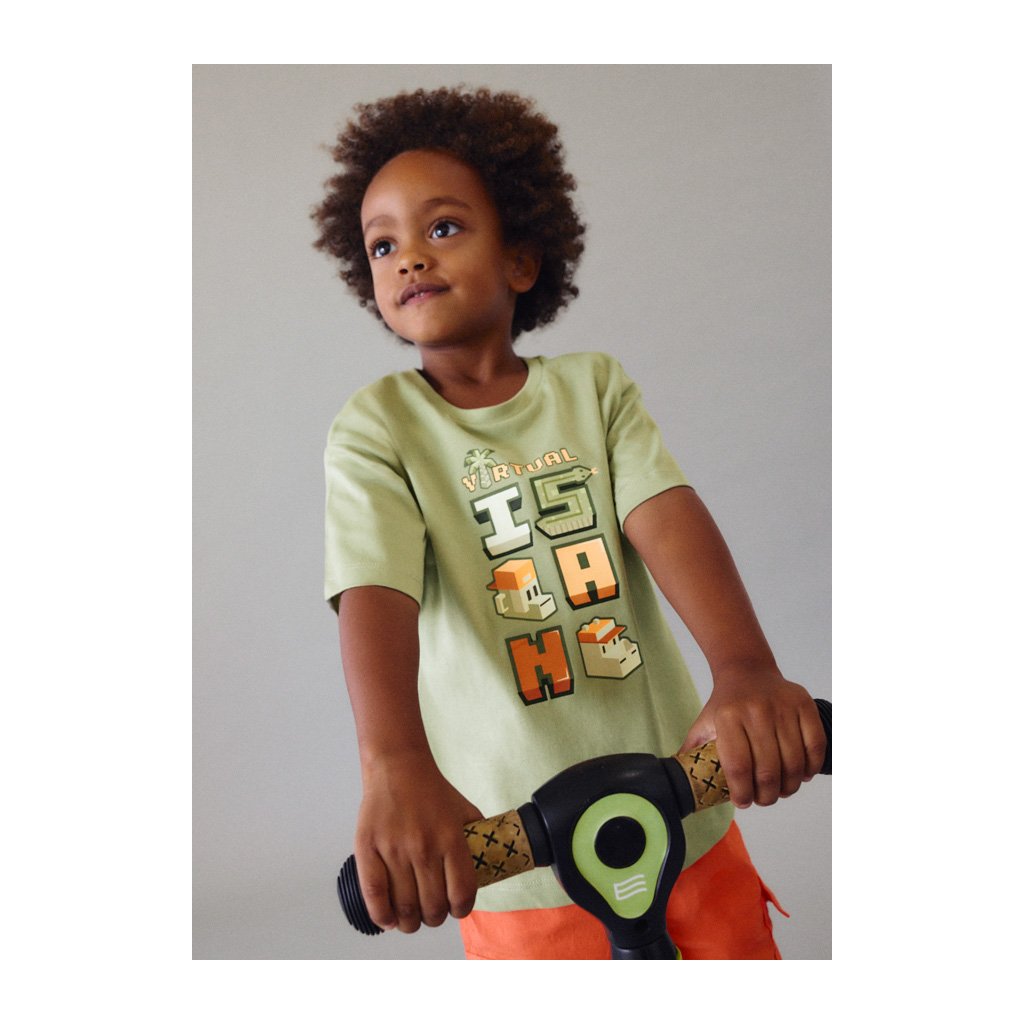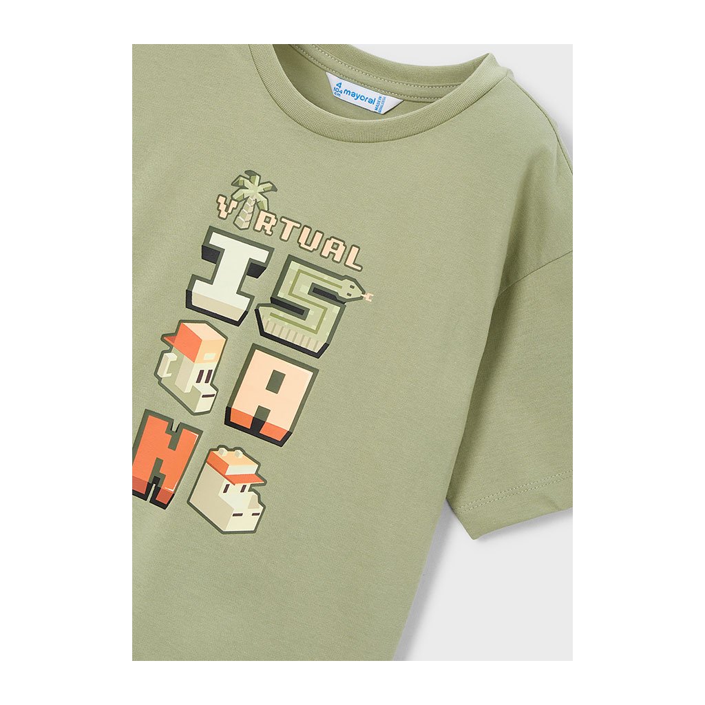 A Mayoral márkájú fiús póló stílusos pixelnyomott mintával rendelkezik, amely a népszerű Minecraft játékvilágára emlékeztet. A egyszerű szabás és egyszínű alap könnyen kombinálható különböző öltözékekkel, és alkalmas mindennapi viseletre. A póló kiváló minőségű pamutból készült, amely puha, légáteresztő és kényelmes még melegebb napokon is. Ideális választás az iskolába, szabadidőre, valamint minden kis játékrajongónak.
