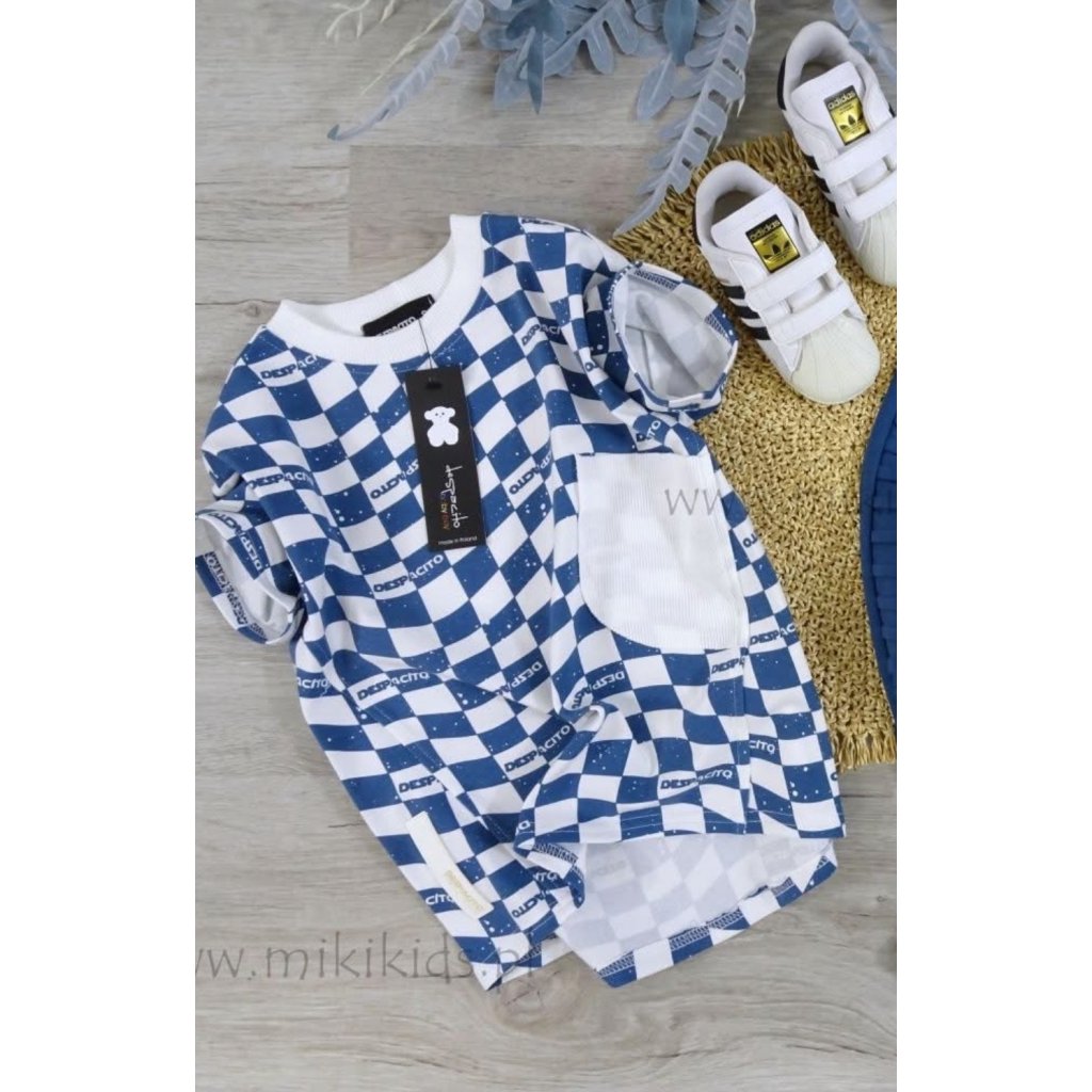 Emelkedj ki a tömegből ezzel az eredeti Despacito márkájú pólóval, amely sakktáblaszerű mintájával és kontrasztos fehér zsebbel a mellrészen dinamikus vizuális hatást kelt, így garantáltan felhívja magára a figyelmet.