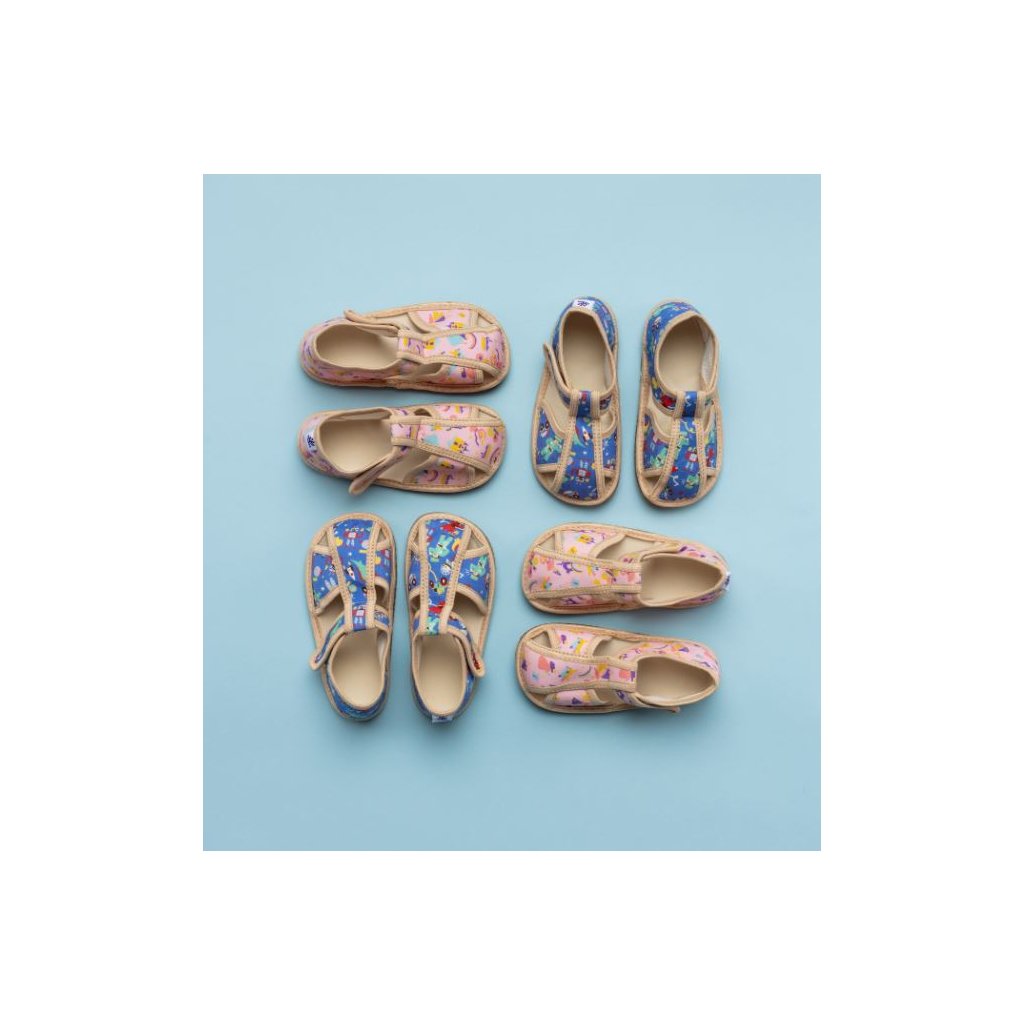 Milash papucsok textil barefoot papucsok jó hajlékonysággal és nyitott orral. MONICA modell széles, telt lábfejhez és magasabb, akár magas lábfejhez is alkalmas. A papucsok nulla süllyedéssel, enyhén merevített sarkakkal rendelkeznek, beltéri használatra ideálisak. Egyszerűen tépőzárral zárhatók, amit egy kisebb ovis is könnyen kezel.