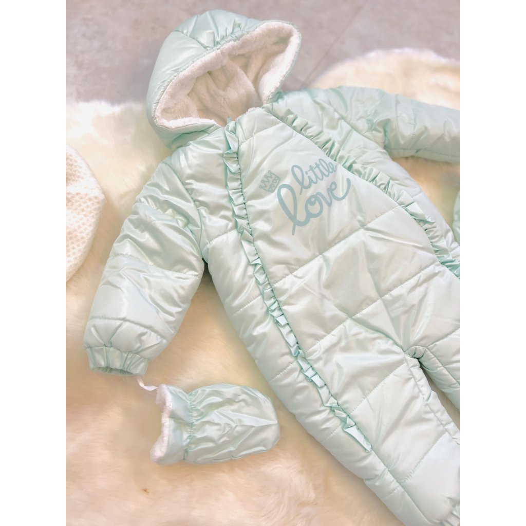 Az overál vízálló, belül meleg, bolyhos.