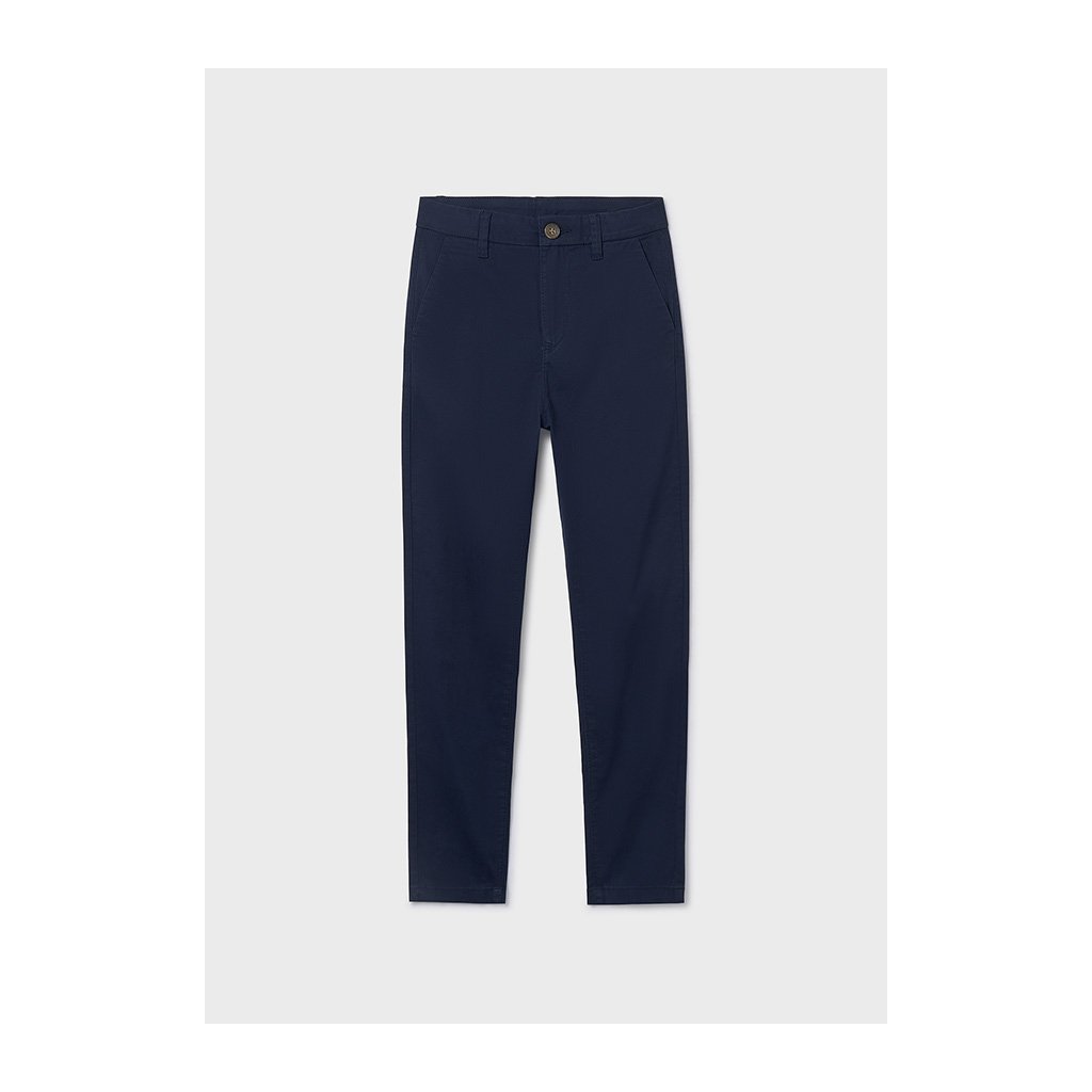 Sportos elegáns fiú nadrág Mayoral Chino Slim ötvözi a modern dizájnt a maximális kényelemmel. A szűk slim fit szabásvonal a nadrágnak rendezett és stílusos megjelenést kölcsönöz. A klasszikus gombos záródás hangsúlyozza elegáns jellegét, míg az állítható derék belső gumival lehetővé teszi a könnyű és pontos méretre igazítást.