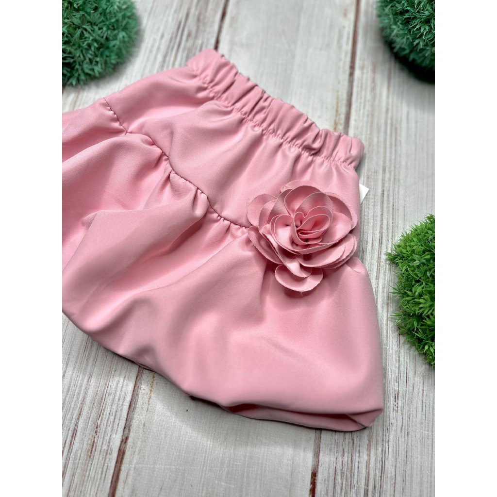 Elegáns lány szoknya gyengéd rózsaszín árnyalatban, amely figyelemre méltó stílusos részletével – nagy virágos brošúrájával. Kiváló minőségű és kényelmes anyagból készült, amely garantálja a szabad mozgást és a kényelmet egész nap.