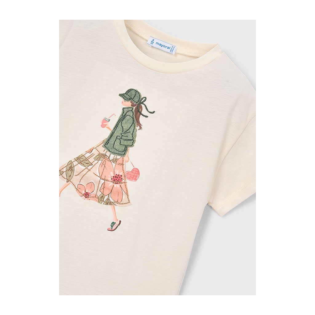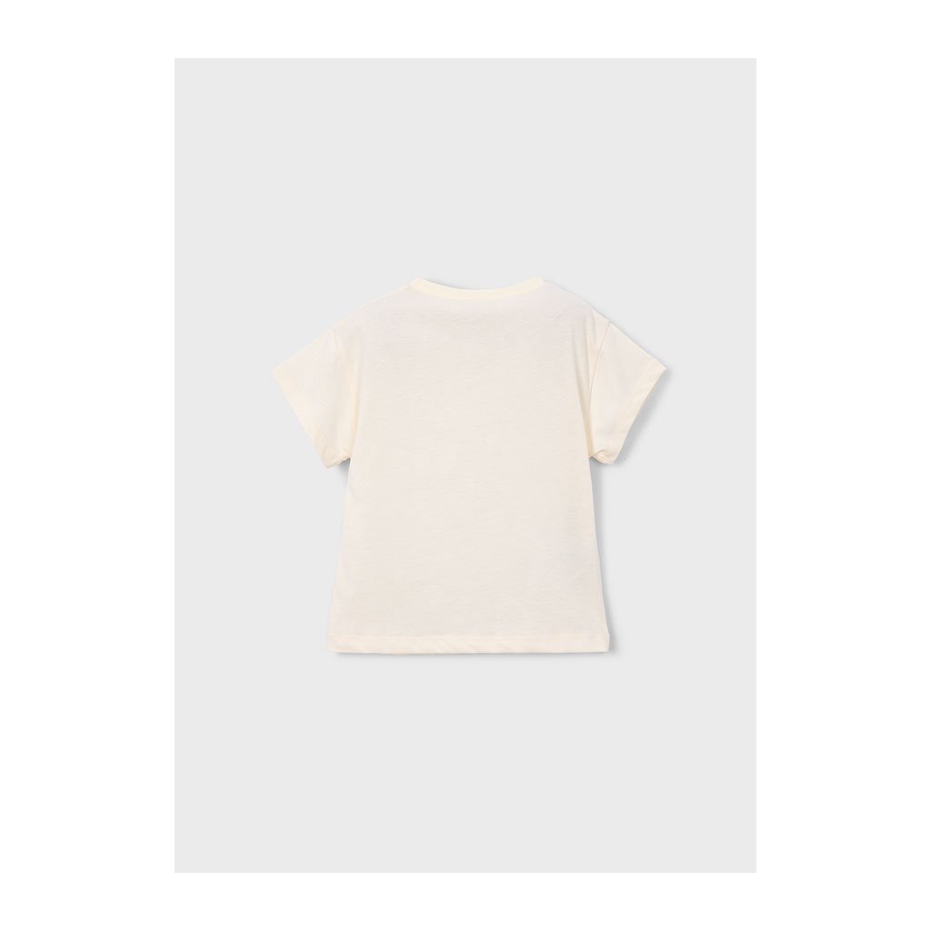 Lányka póló Mayoral puha, jó minőségű pamutból, rövid ujjú. Az elülső oldalon gyönyörű díszítő applikáció található, amely feldobja és játékossá teszi a pólót. A póló klasszikus szabású, kerek nyakkivágással, könnyen kombinálható nadrággal, szoknyával vagy leggingszel. Ideális önálló darabként vagy rétegezett outfit részeként minden évszakban