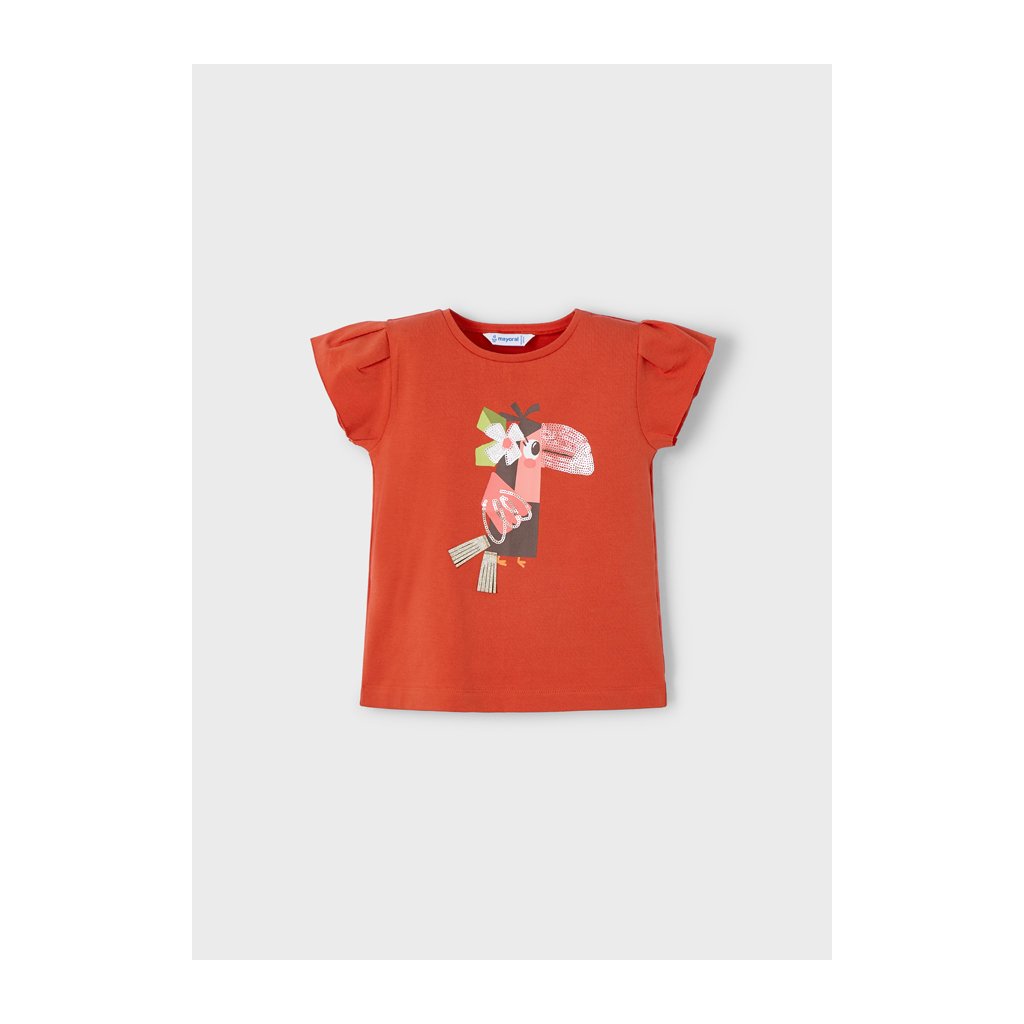 Kényelmes póló divatos tégla színben, vidám képpel díszítve. Puha anyag és kellemes szabás biztosítja a kényelmet mindennapi viselethez.