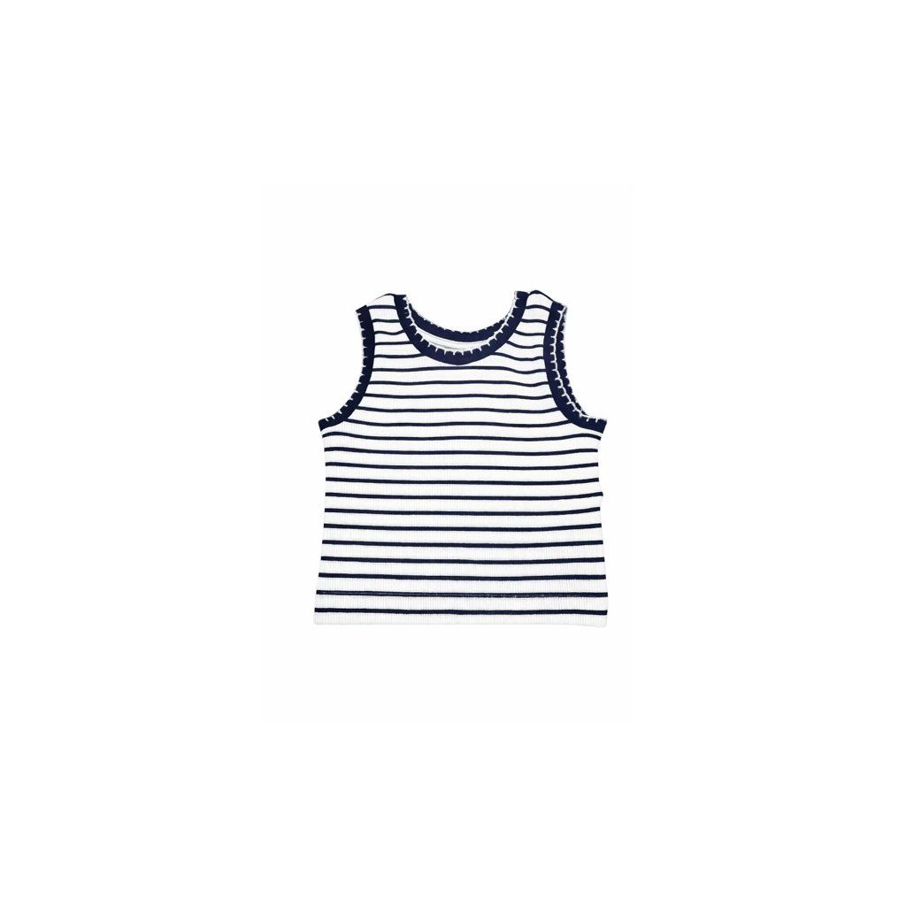 Egy friss és időtlen darab, amely tökéletesen illeszkedik a nyári ruhatáradba. A kék-fehér csíkos mintájú lányfelső egyszerre játékos és elegáns. Tökéletes a meleg napokra, akár a játszótérre, kirándulásra vagy alkalmi viseletre.