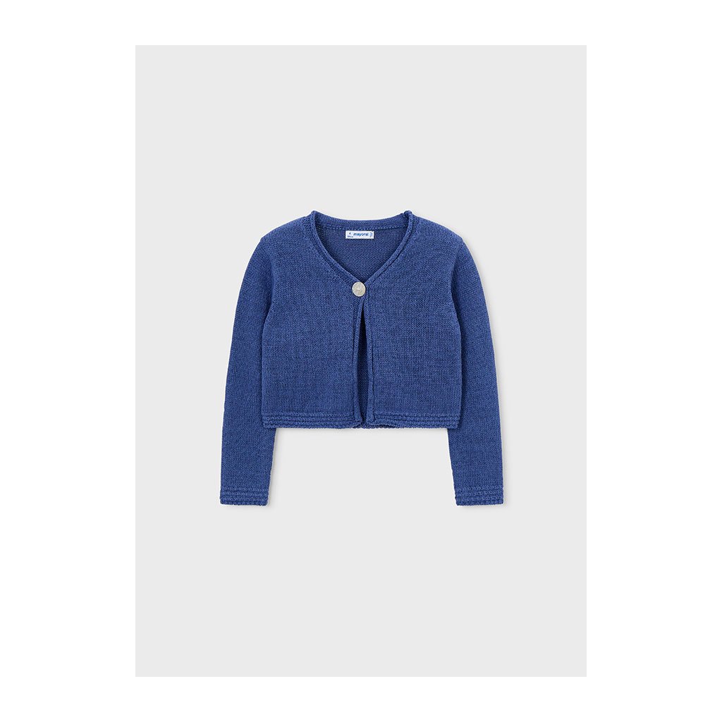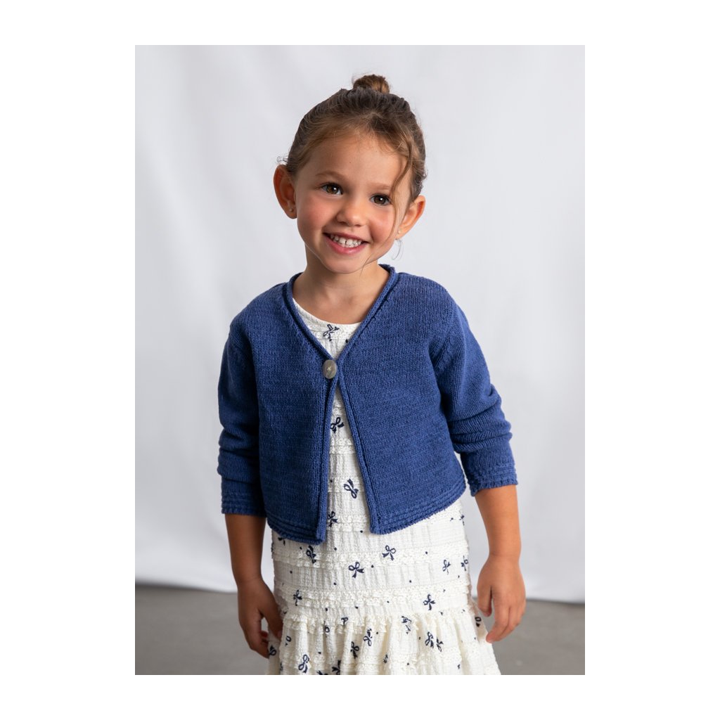 A Mayoral márkájú lányos kötött bolero kényelmet nyújt egész nap. Rövid szabás és egy gomb a nyaknál, ami szépen tartja a bolerót. Az egyszerű és elegáns kialakítás ideálissá teszi ruhákhoz vagy szoknyákhoz. Tökéletes ünnepekre, családi alkalmakra vagy stílusos rétegként hűvösebb napokon.