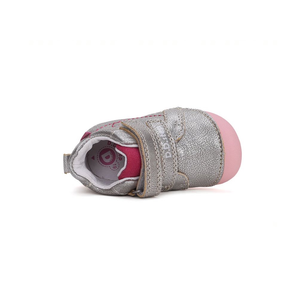 Minden D.D. Step cipő valódi, kiváló minőségű marhabőrből készül, hogy tökéletesen alkalmazkodjon a gyerek lábához. Az orr-rész úgy van kialakítva, hogy védje a lábujjakat, támogassa azok helyes növekedését, és növelje a cipő tartósságát.