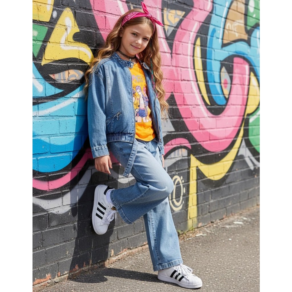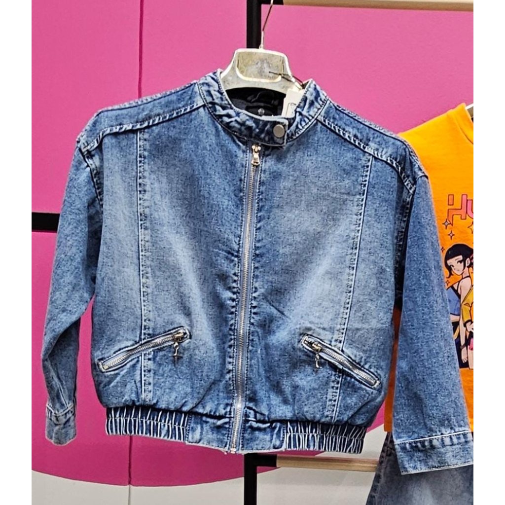 Lányos farmerdzseki széles szabással stílusos és praktikus darab, amely kiegészíti minden outfitet. A lazább szabás kényelmet és modern megjelenést biztosít. A dzseki elöl praktikus cipzáras zsebekkel van ellátva, amelyek nemcsak dizájnelemként, hanem funkcionális részletként is szolgálnak apróságok tárolására. A kiváló minőségű farmer anyag tartós és kellemes viselet. Ideális átmeneti időszakra, iskolába és szabadidőre.