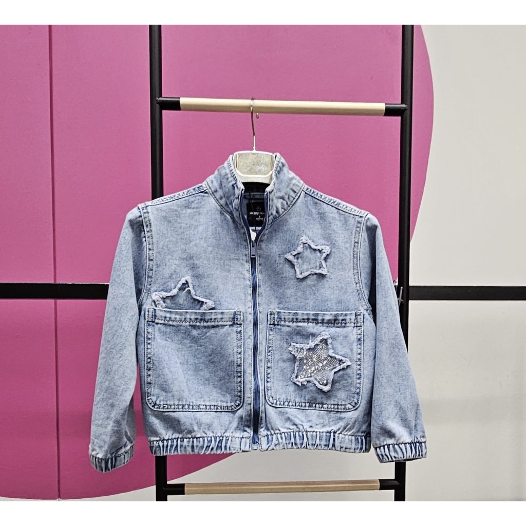 Lányos farmerdzseki széles szabással stílusos és kényelmes darab mindennapi ruhatárhoz. A szabad szabás maximális kényelmet és modern megjelenést biztosít. A nagy elülső zsebek zipzár nélkül játékos csillag alkalmazással vannak díszítve, ami eredeti részletet ad a dzsekinek. A minőségi farmer anyag tartós és kellemes viselet. Ideális tavaszra, őszre, iskolába és szabadidőre.