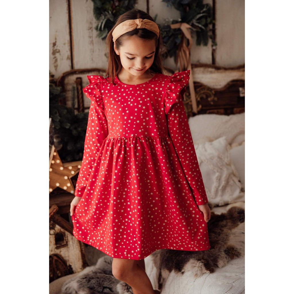 Lányos karácsonyi ruha arany csillagokkal