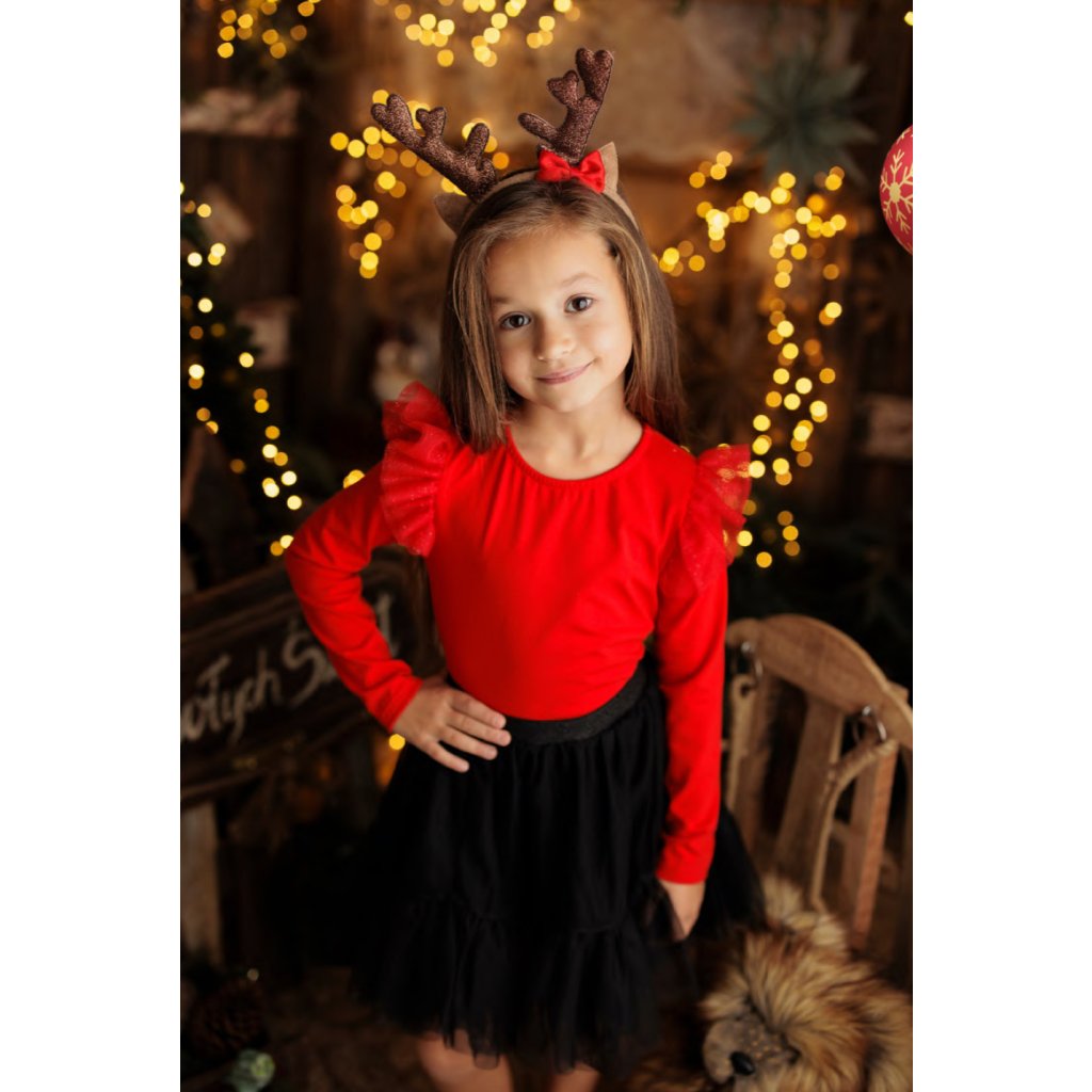 Lányos pamut karácsonyi póló fodrokkal, lilly szürke