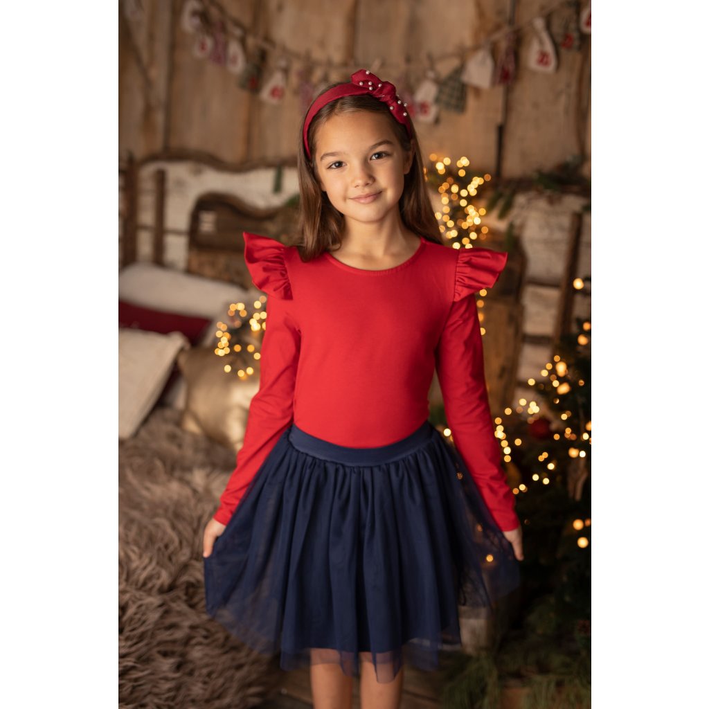 Dievčenské bavlnené vianočné tričko s volánikmi (Veľkosť 116, Farba Červená)