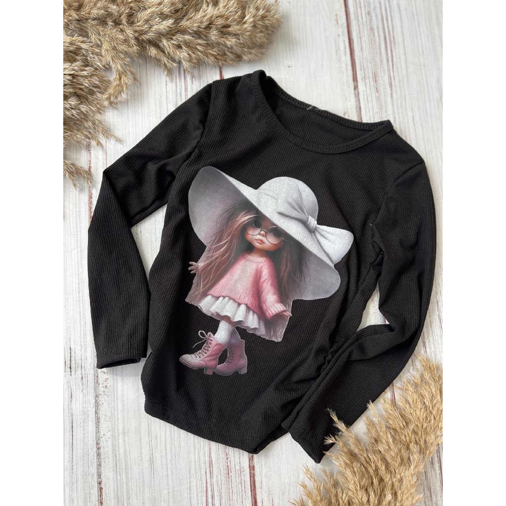 Lányos póló babás mintával - Fekete