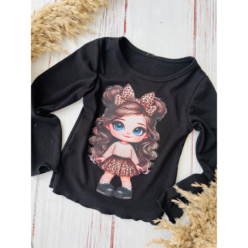 Dievčenské tričko s bábikou - Čierna (Veľkosť 152/158)