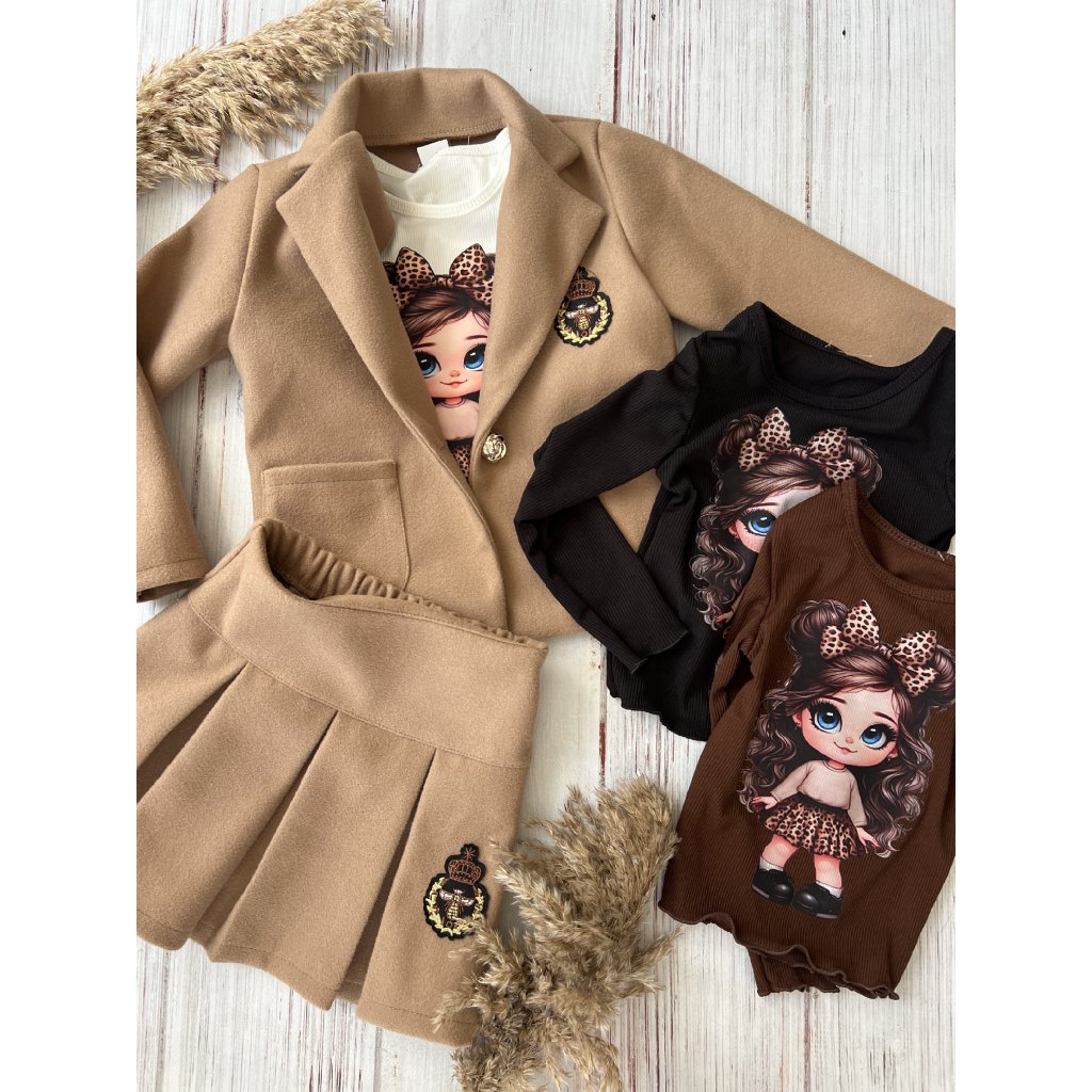 Lányos póló babás mintával - Fekete