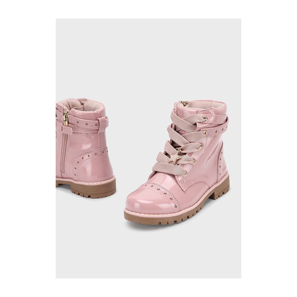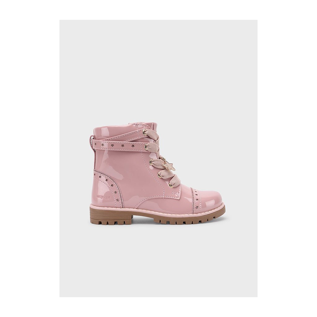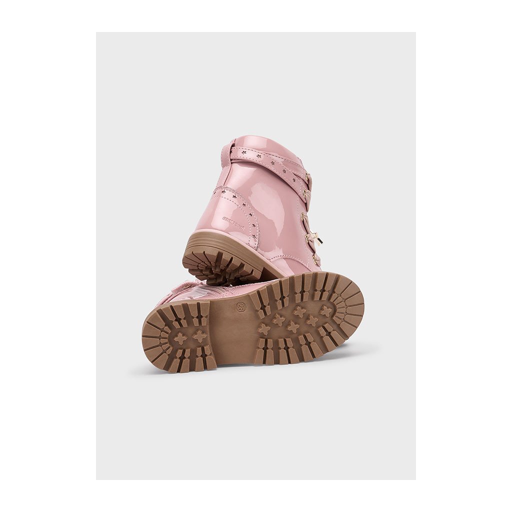 A rózsaszín lakkozott Mayoral munkácskák ötvözik az elegáns megjelenést a mindennapi viselethez ideális kényelemmel. A fényes felület modern és stílusos hatást kelt, míg a puha talpbetét és a stabil, csúszásmentes talp biztosítja a biztos és kényelmes lépést. Az időtlen dizájn miatt ezek a munkácskák remek választás azoknak a lányoknak, akik trendinek akarnak kinézni és kényelmesen szeretnének érezni magukat.