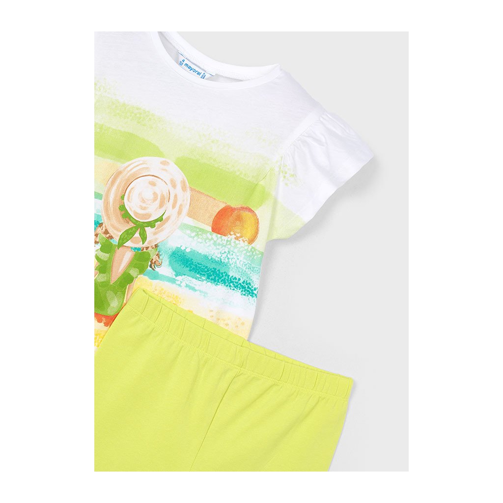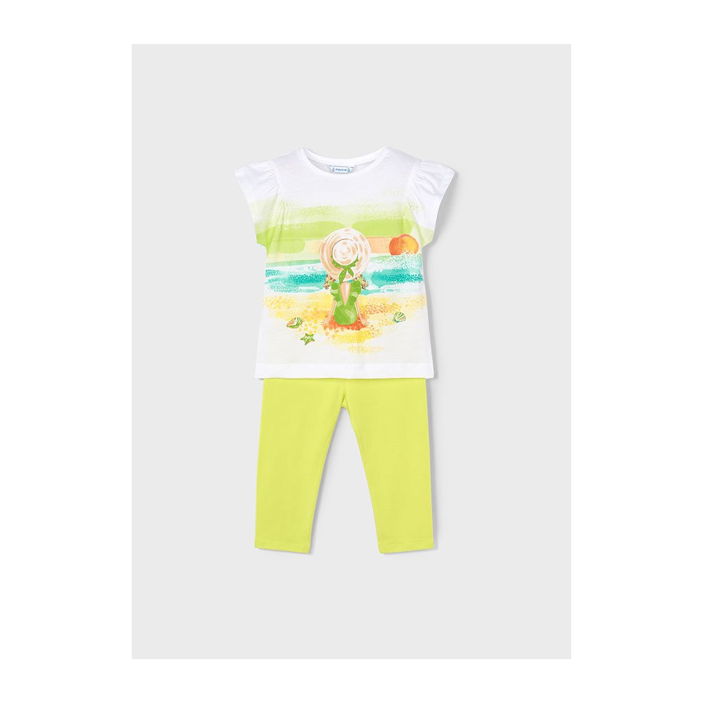 Csodás 2 részes nyári szett a MAYORAL márkától ragyogó sárga színben, amely tökéletes a meleg napokra. A szett leggyakrabban könnyű nyári felsőből (póló/top) és kényelmes rövidnadrágból vagy leggingsből áll – a konkrét modell szerint.