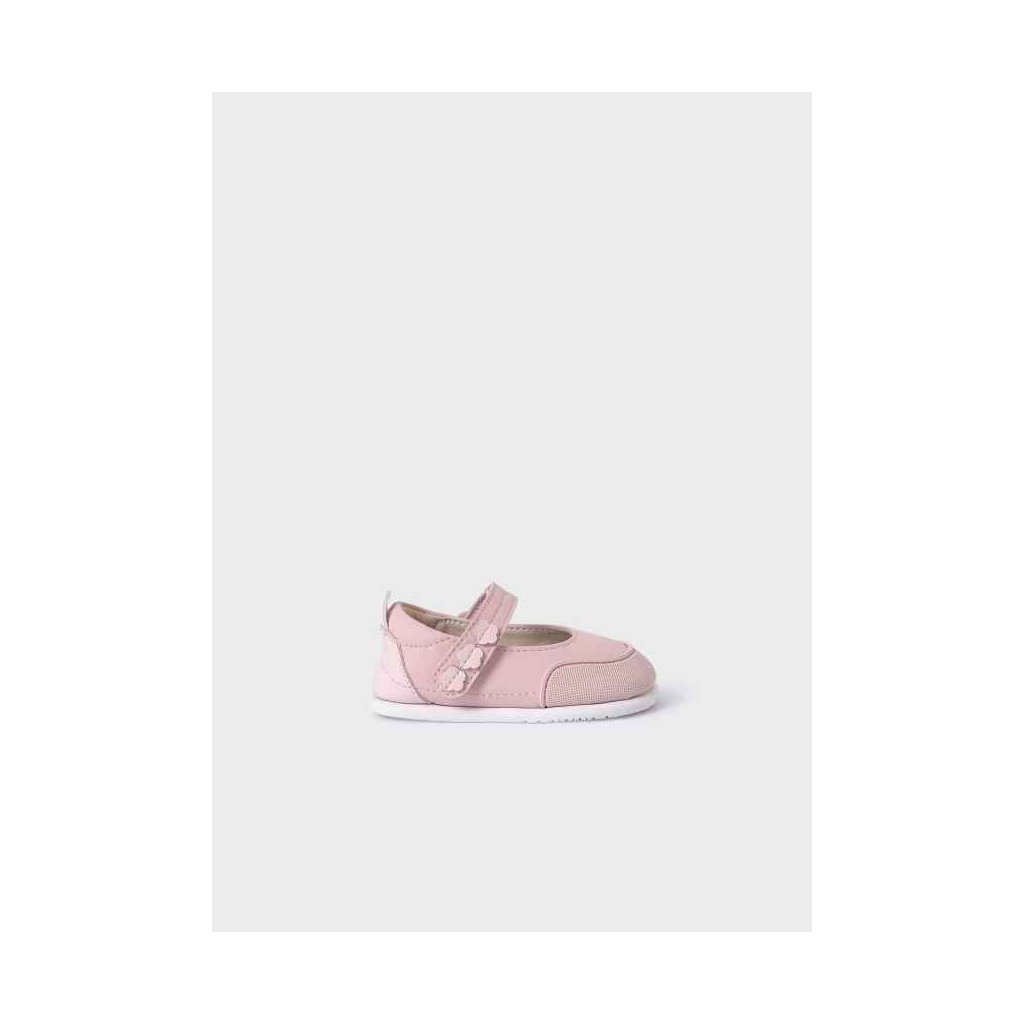 A Mayoral barefoot balerina a legkisebb lányok számára készült, akik az első lépéseiket teszik, és fokozatosan nyerik el a járás bizalmát. Ez könnyű és kényelmes cipő spanyol eredetű, amely tiszteletben tartja a gyermek lábának természetes fejlődését és mozgását. A balerina rendkívül rugalmas, vékony és puha talppal van ellátva, amely jobb kapcsolatot biztosít a talajjal, és támogatja a láb izmainak természetes működését. A tágas orr rész elegendő helyet biztosít az ujjaknak a szabad mozgáshoz, ami különösen fontos a korai fejlődési időszakban.