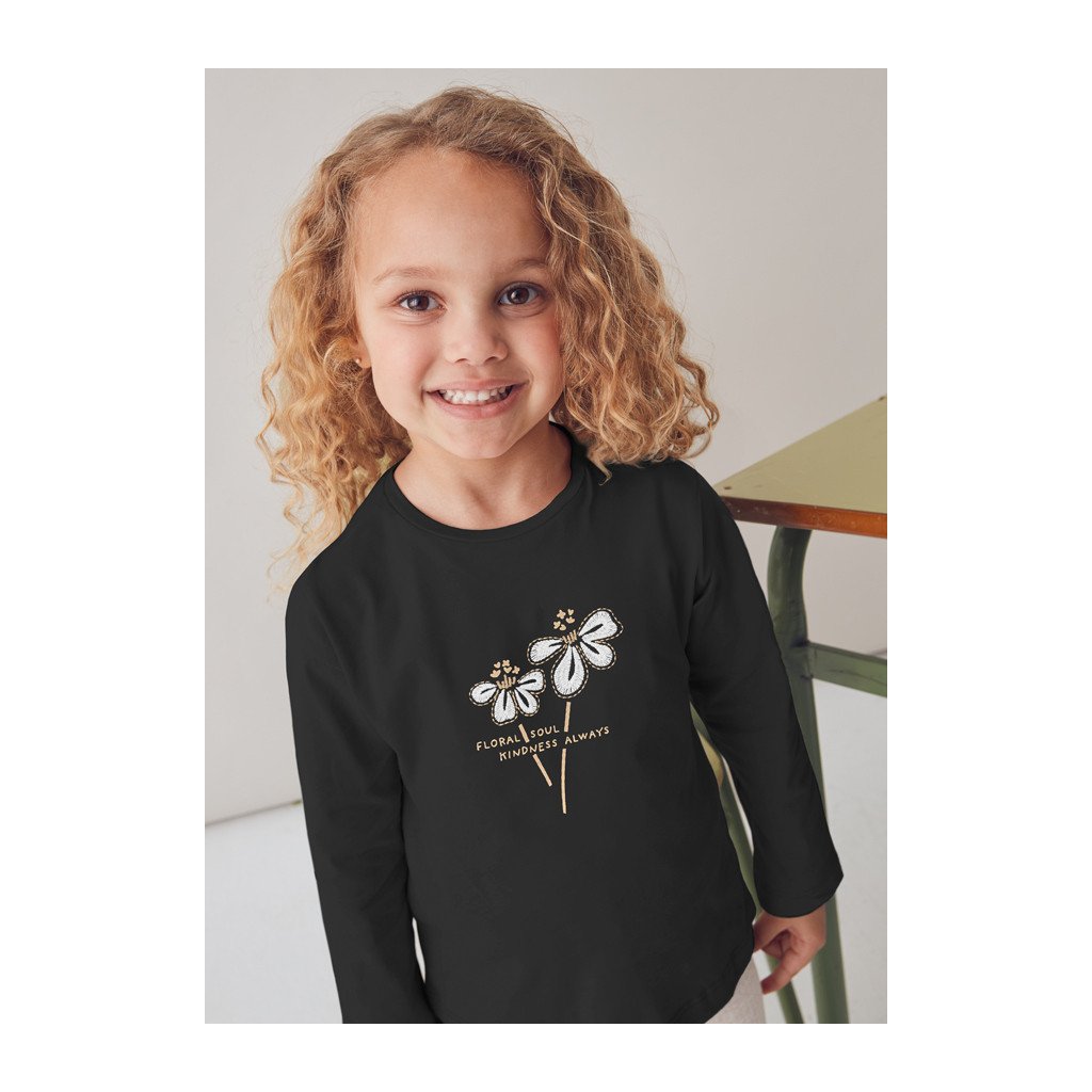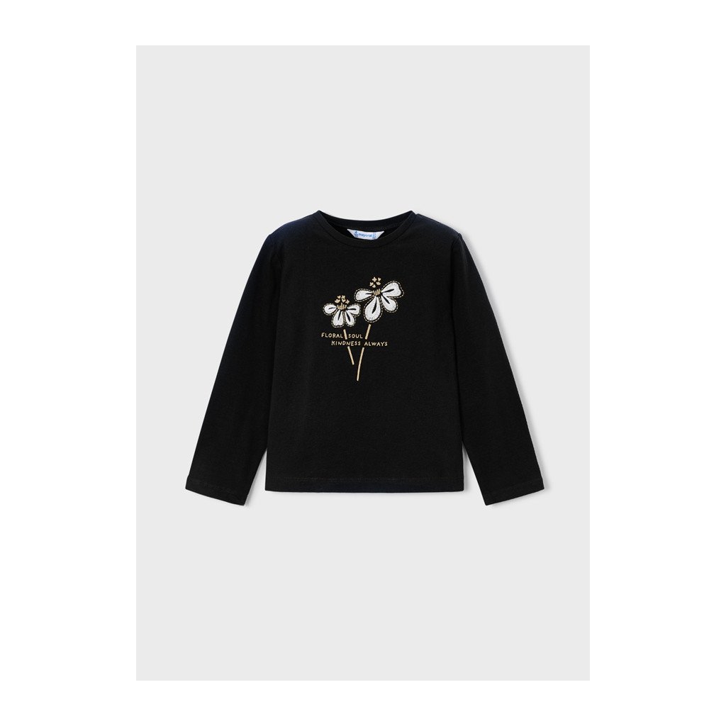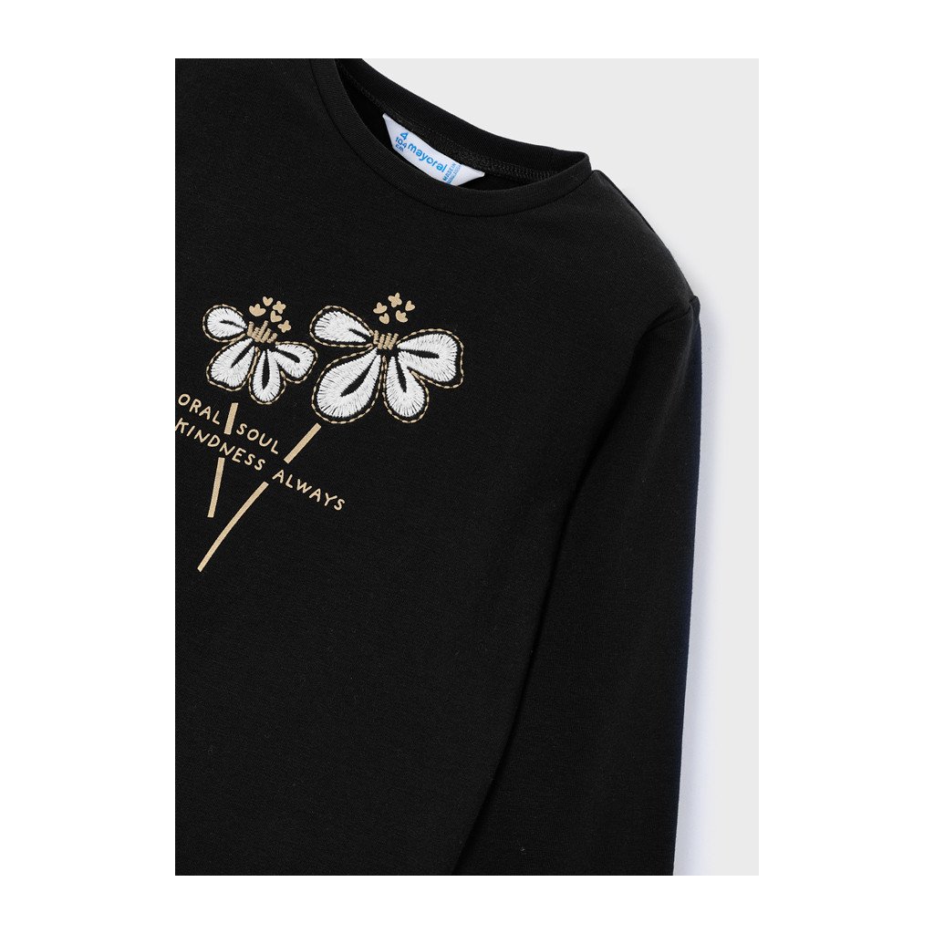 MAYORAL basic lányka hosszú ujjú póló – hímzett virággal –Fekete
