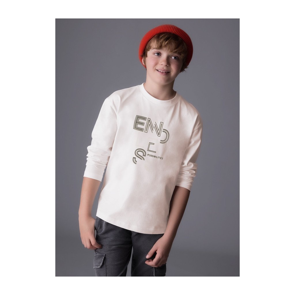 Kényelmes fiú basic póló a Mayoral márkától s modern nyomtatással, 100%-os pamutból készült. A puha és légáteresztő anyag kíméli a gyermek bőrét, és egész nap kényelmet nyújt.