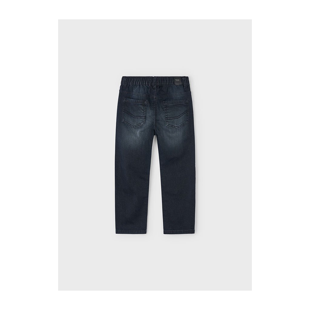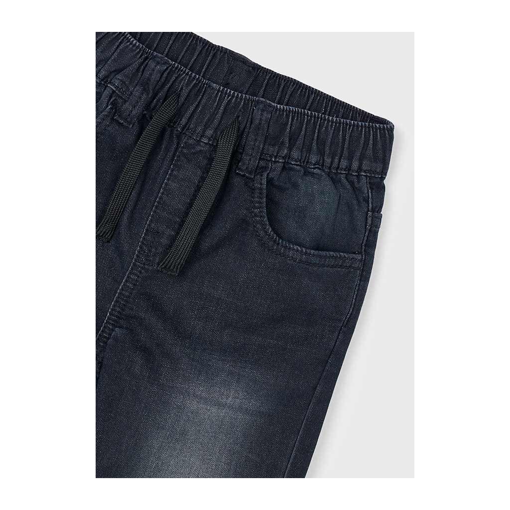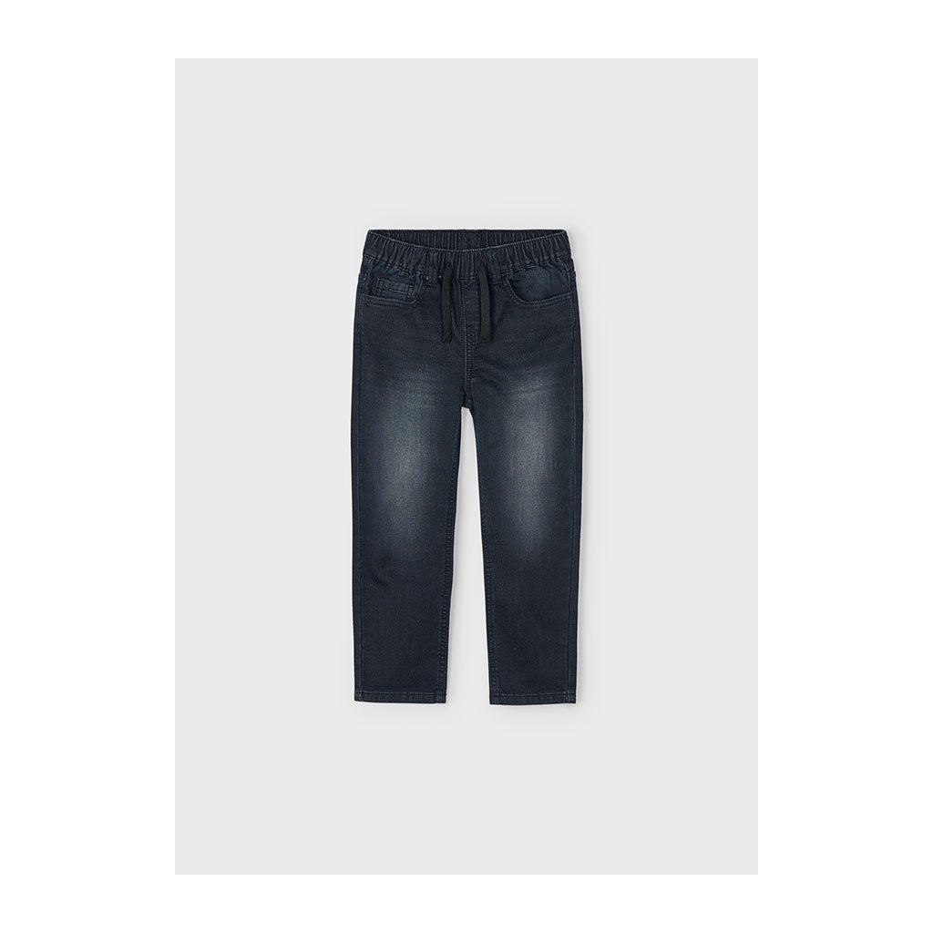Kényelmes fiú farmer Mayoral jogger stílusban ideális választás mindennapi viselethez és szabadidőhöz. Gumiszalag a derekán biztosítja a könnyű felvételt és a kényelmes viseletet mozgáskorlátozás nélkül.