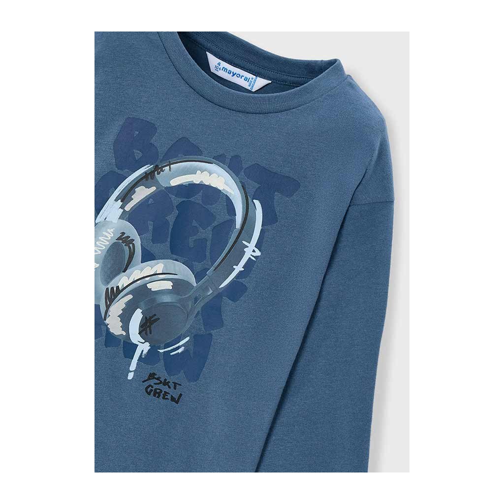 A hosszú ujjú pólót füles nyomtatás díszíti, ami modern és játékos megjelenést kölcsönöz. A kényelmes szabásnak és az univerzális dizájnnak köszönhetően könnyen kombinálható nadrággal vagy melegítővel, így ideális mindennapi viseletre és szabadidős tevékenységekre.