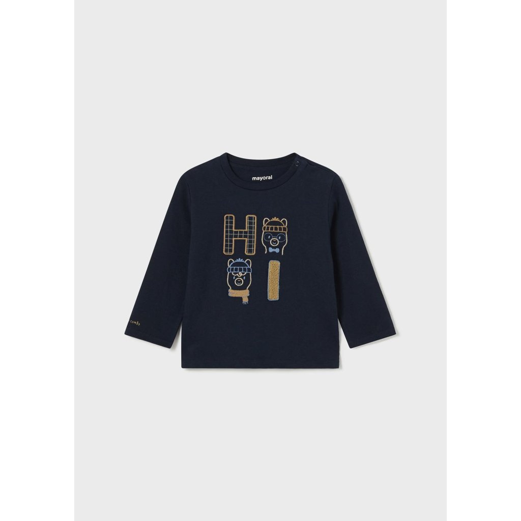 A hosszú ujjú pólót vidám gyermekmotívummal díszítették, ami játékos megjelenést kölcsönöz. Modern szabás és egyszerű dizájn könnyen kombinálható nadrággal vagy melegítővel. Ideális mindennapi viseletre.